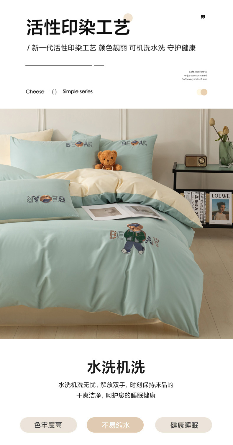 当前位置: 91家纺网 > 商品网购 > 床品套件 > 四件套 > 全棉活性四件套 > 万盛家纺 2025新款全棉喷气13372刺绣卡通四件套 cowboy熊-浅蓝卡其