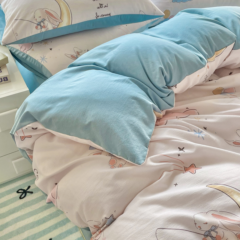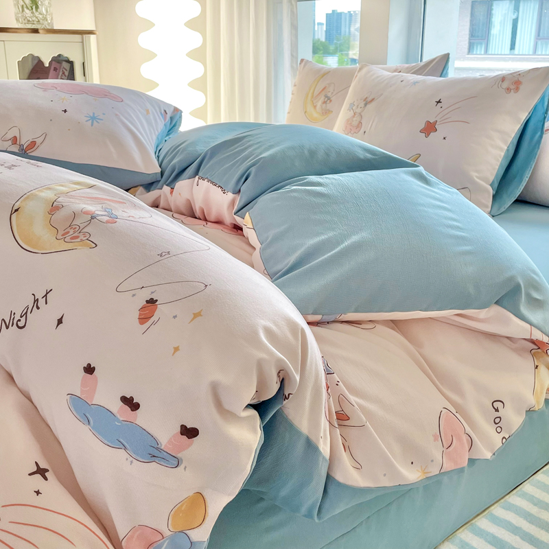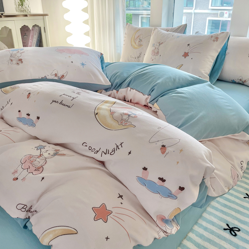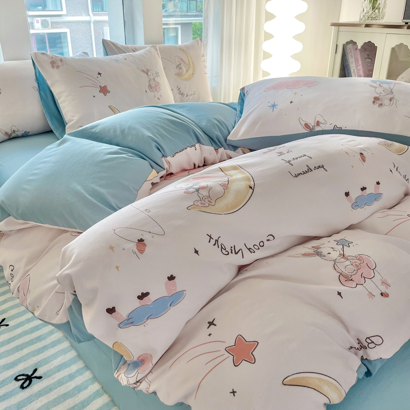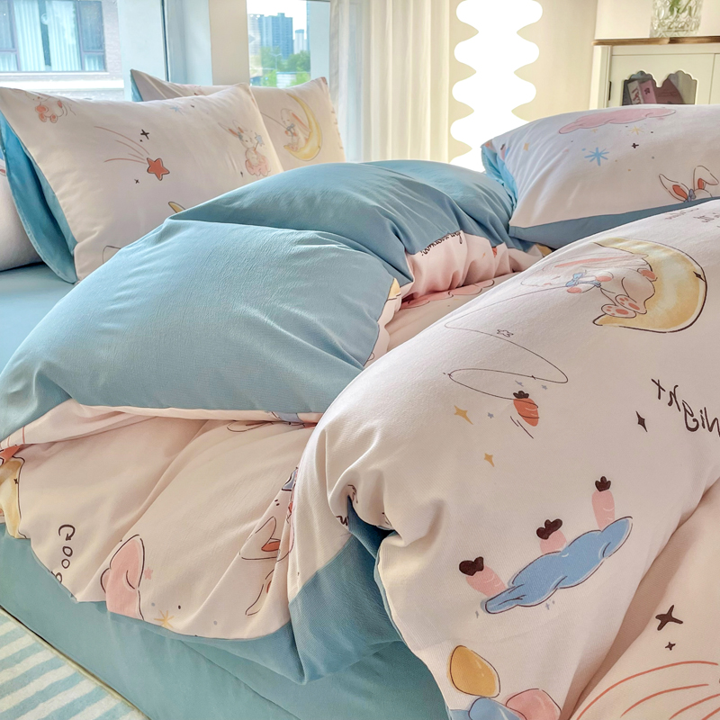 商品名称:仟网汇 2024秋季新款提花针织棉圆角吊边床单四件套三件套 月亮兔米