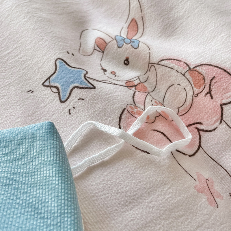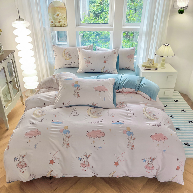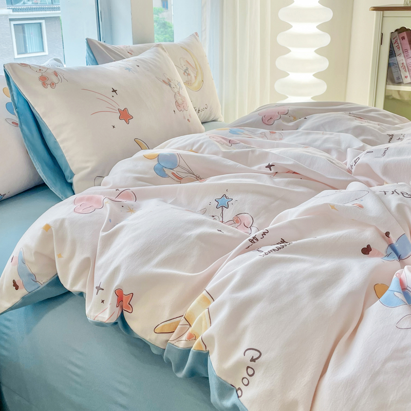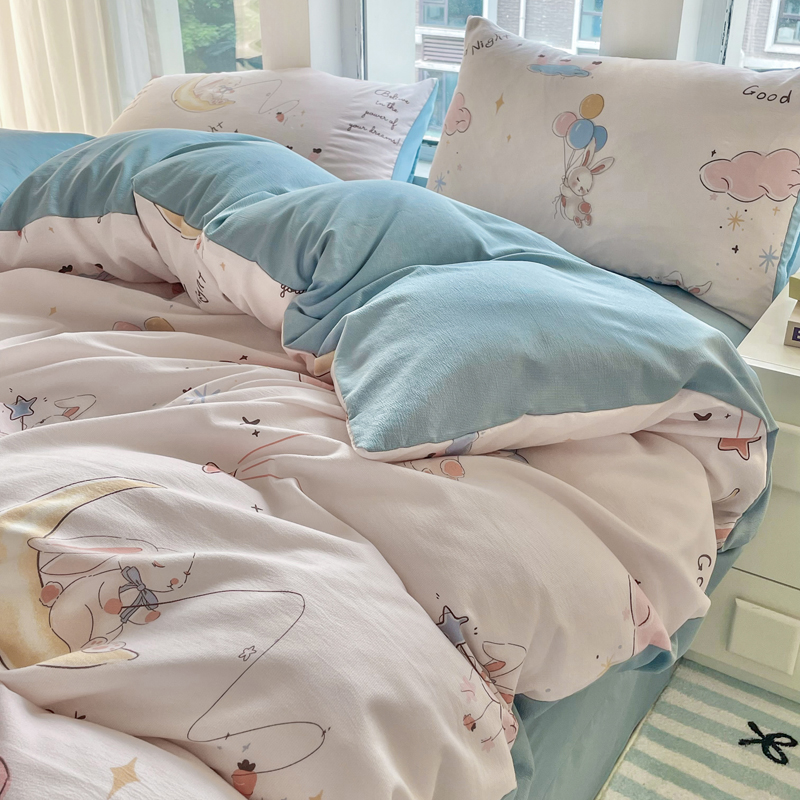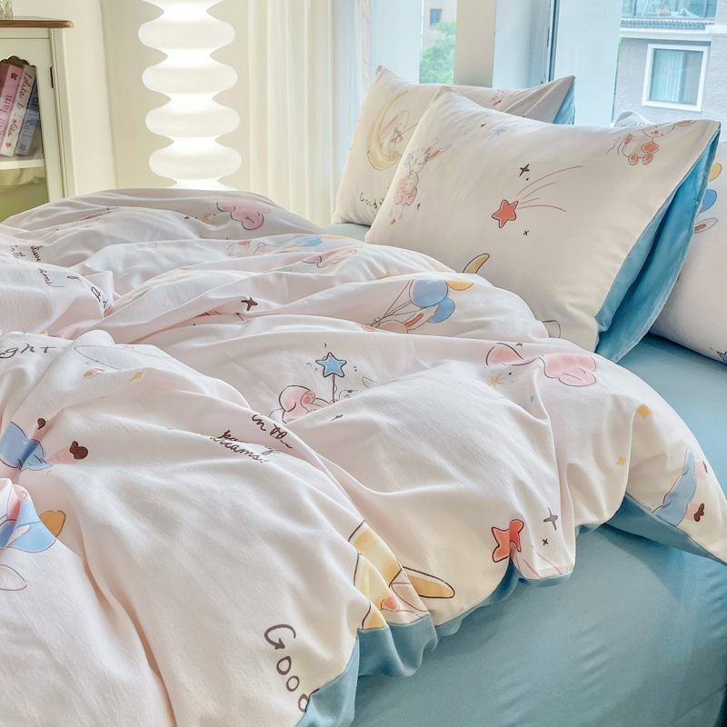 商品名称:仟网汇 2024秋季新款提花针织棉圆角吊边床单四件套三件套 月亮兔米