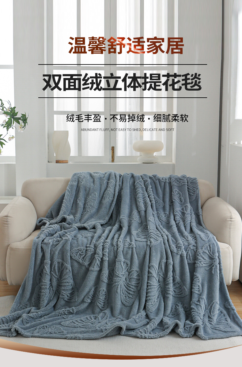 商品名称:金来家纺 2024新款单层双面塔芙绒蝴蝶花提花毛毯 蝴蝶雾蓝