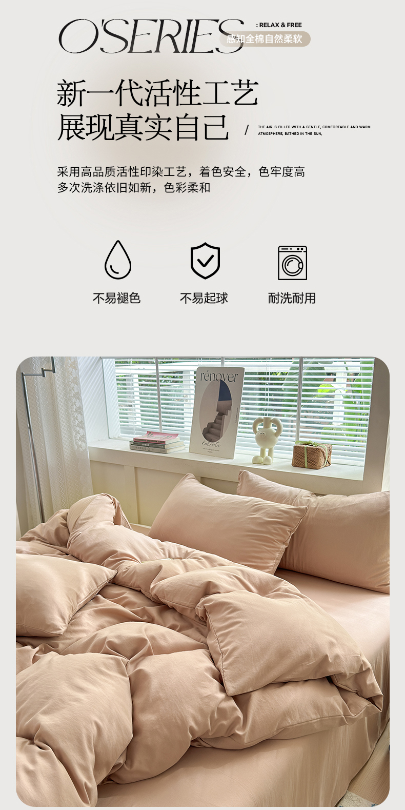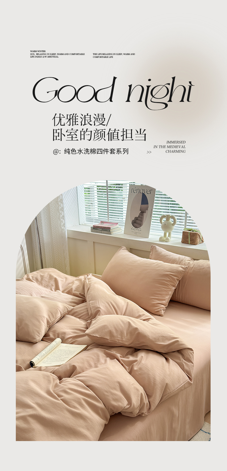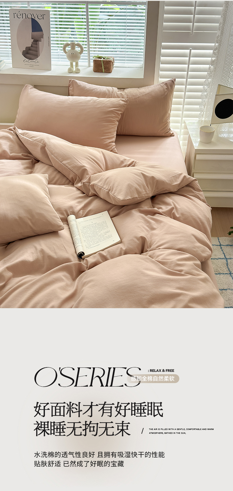 当前位置: 91家纺网 > 商品网购 > 床品套件 > 四件套 > 水洗棉四件套 > 沃朴家居 2024新款纯色水洗棉四件套学生三件套 莫兰迪粉