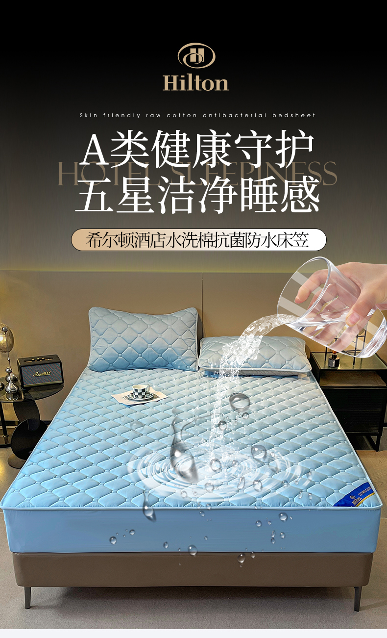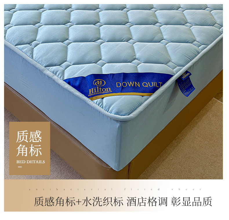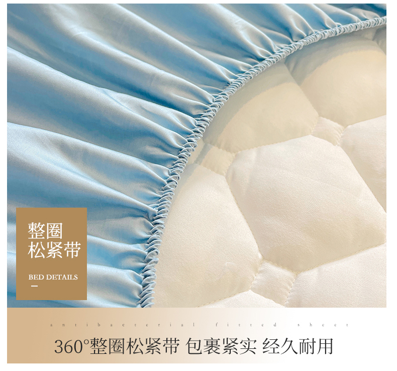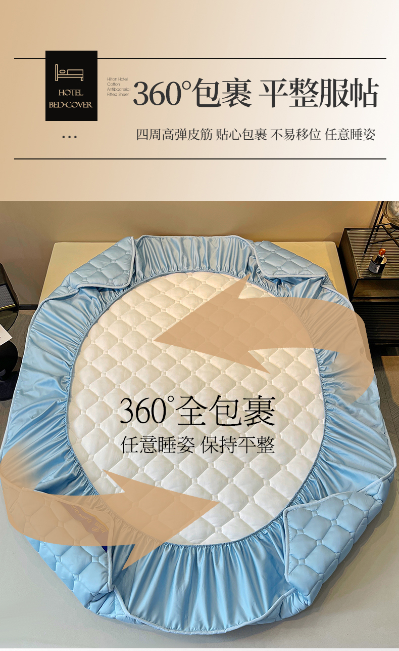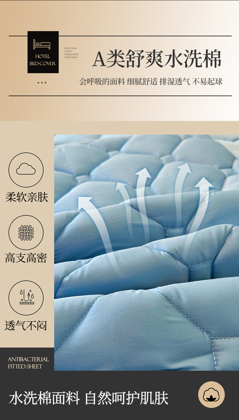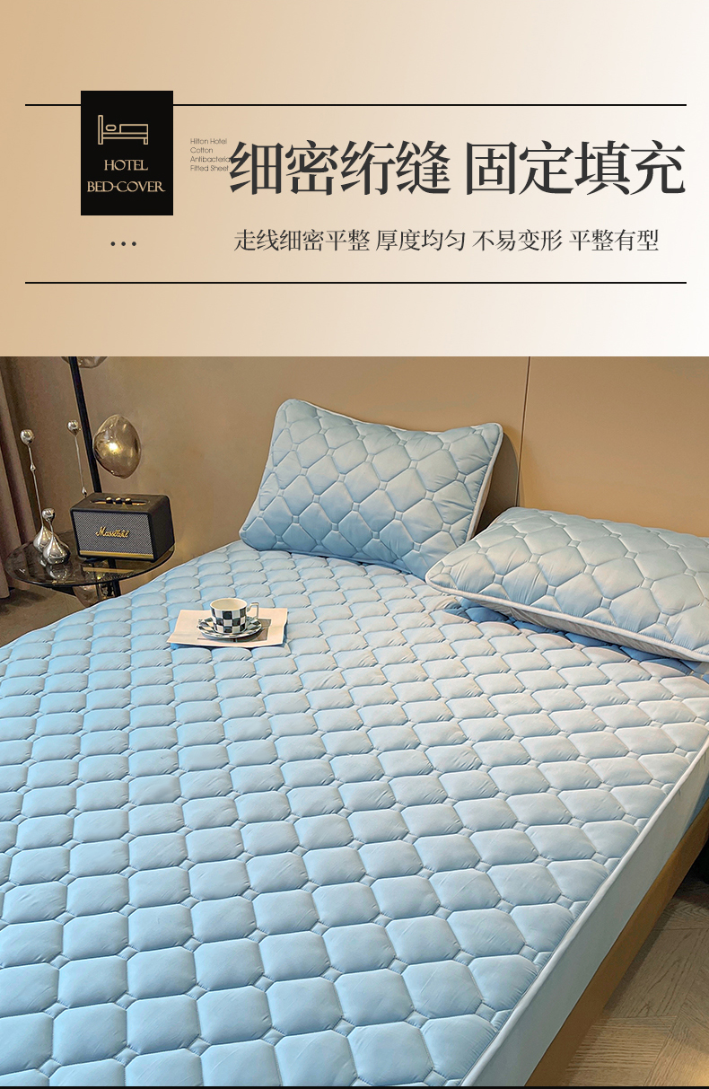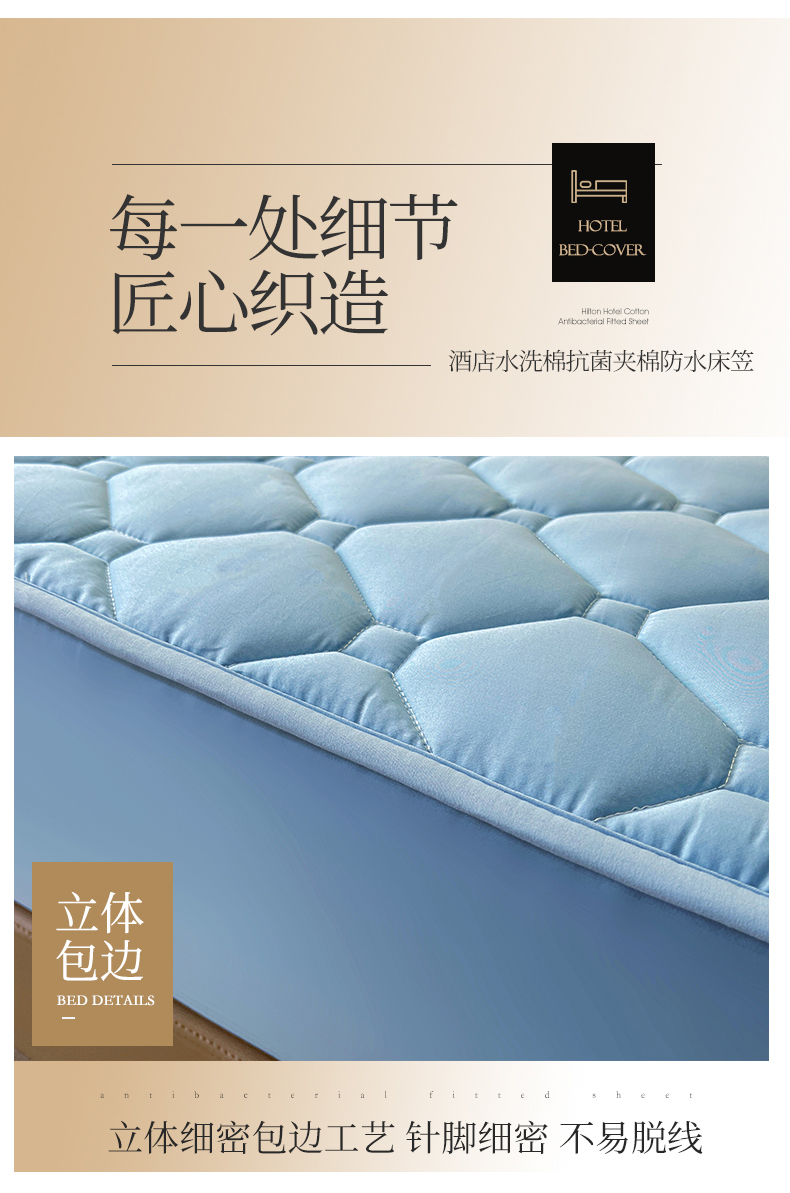 • 91家纺网 家纺一手货源 找家纺 满羽 2024新款防晒防水酒店抗菌夹棉床笠 清新蓝