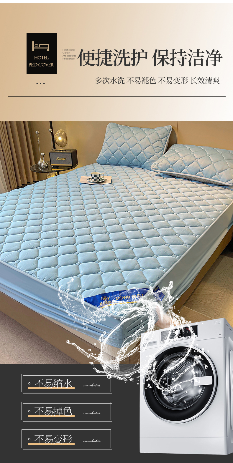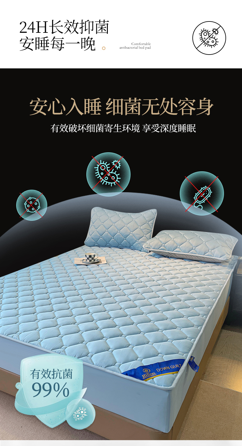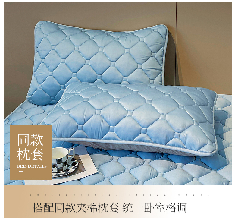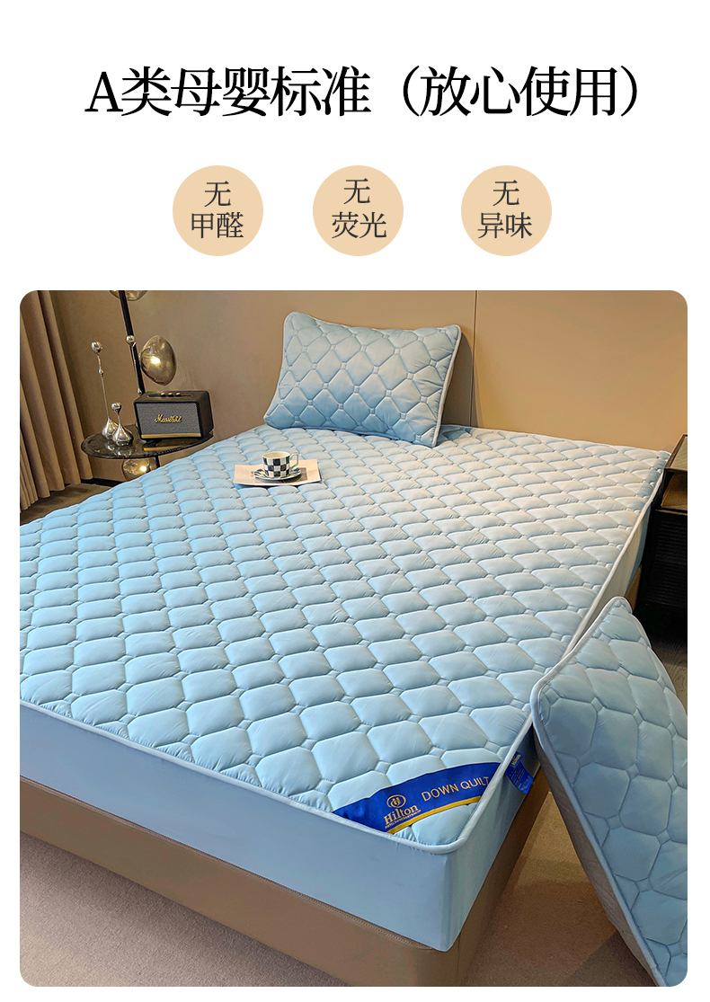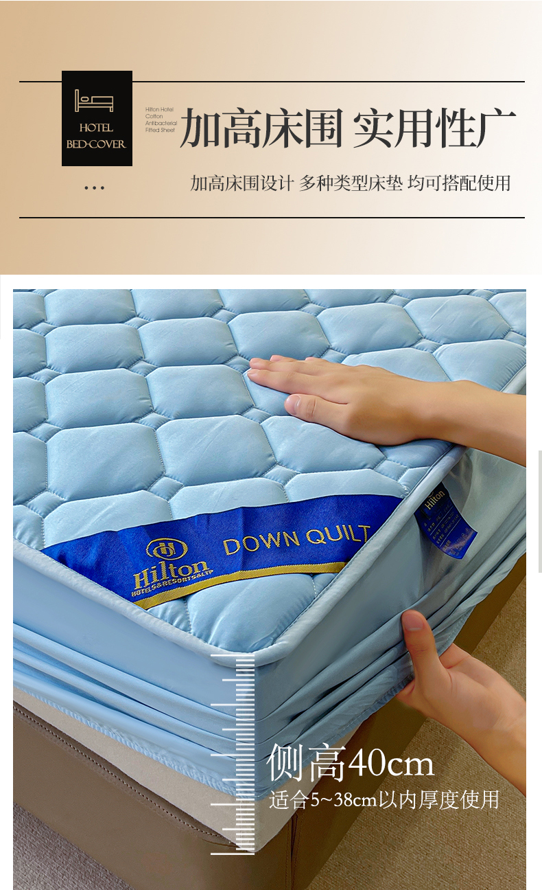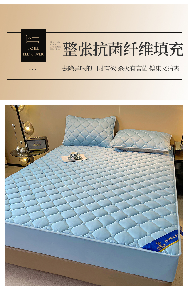 • 91家纺网 家纺一手货源 找家纺 满羽 2024新款防晒防水酒店抗菌夹棉床笠 清新蓝