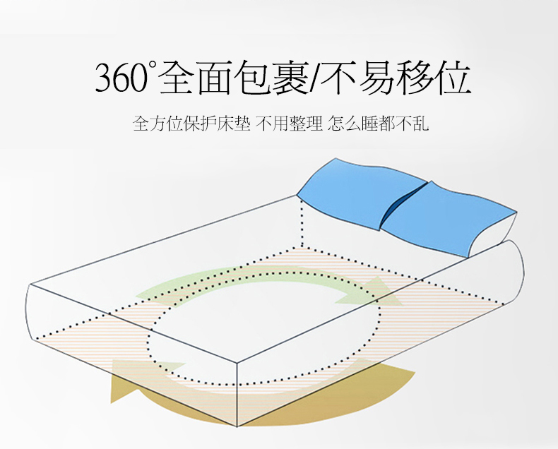 满羽 2024新款防晒防水酒店抗菌夹棉床笠 清新蓝