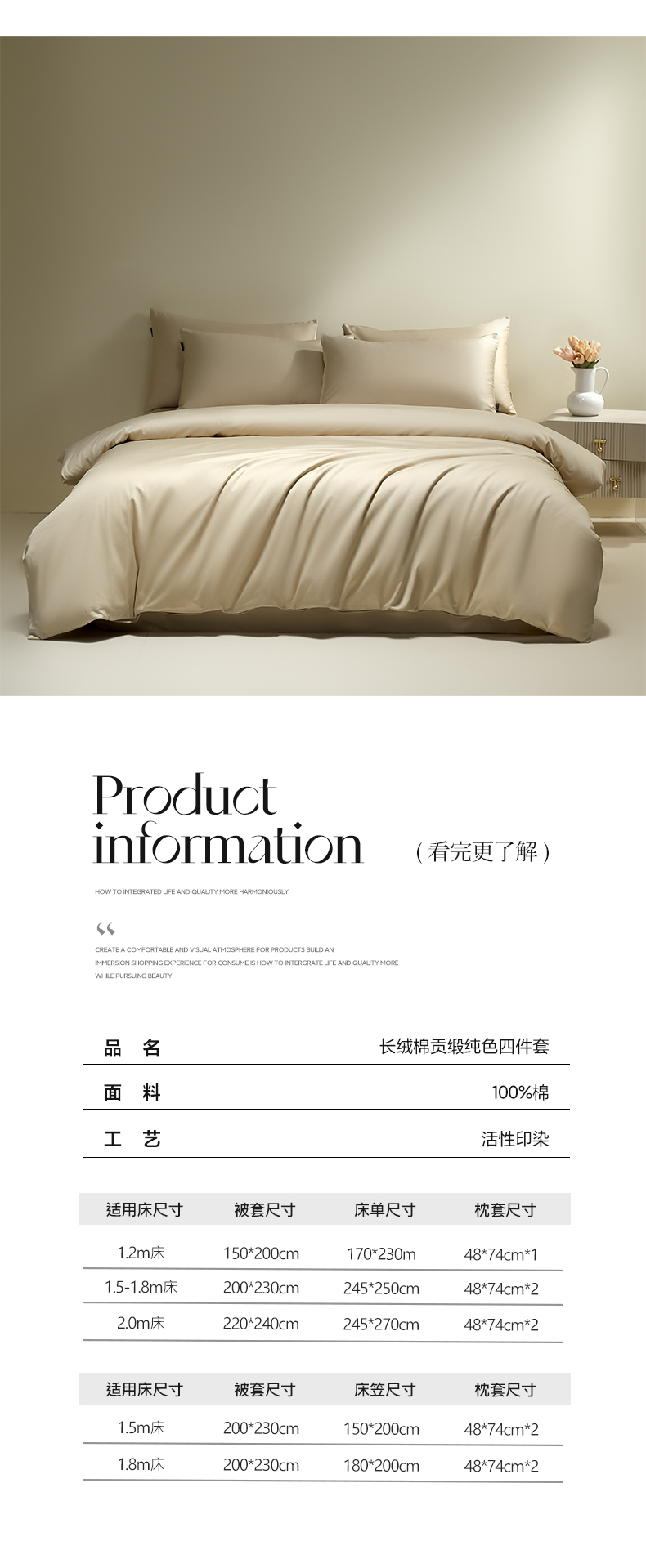 商品名称:安莱生活 2024新款100s全棉贡缎四件套 棕灰