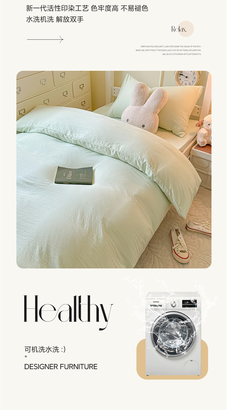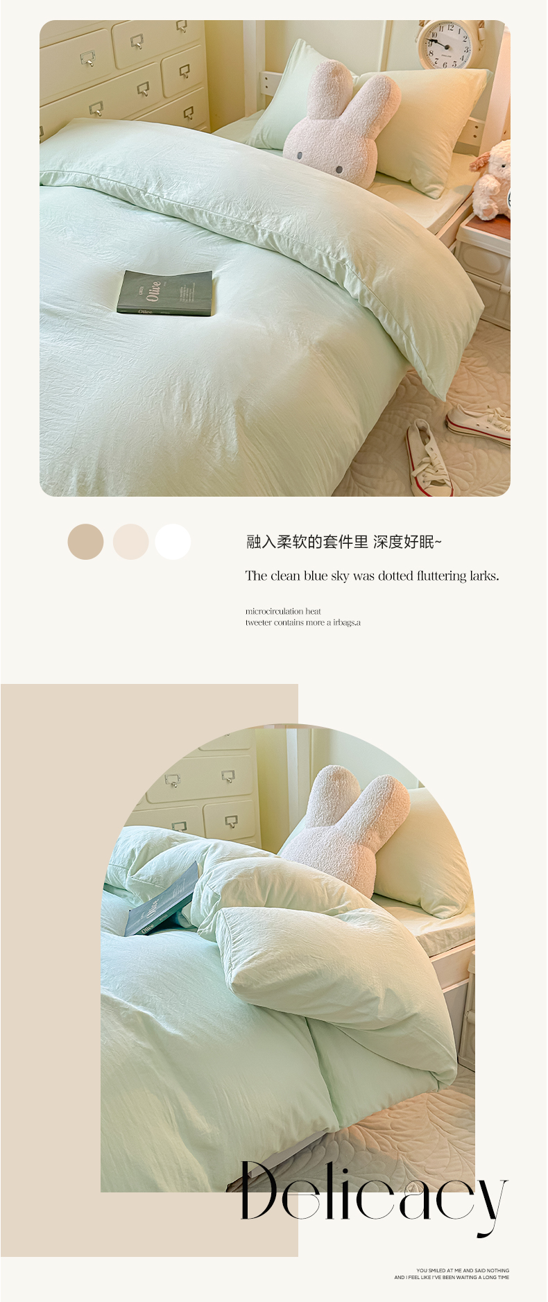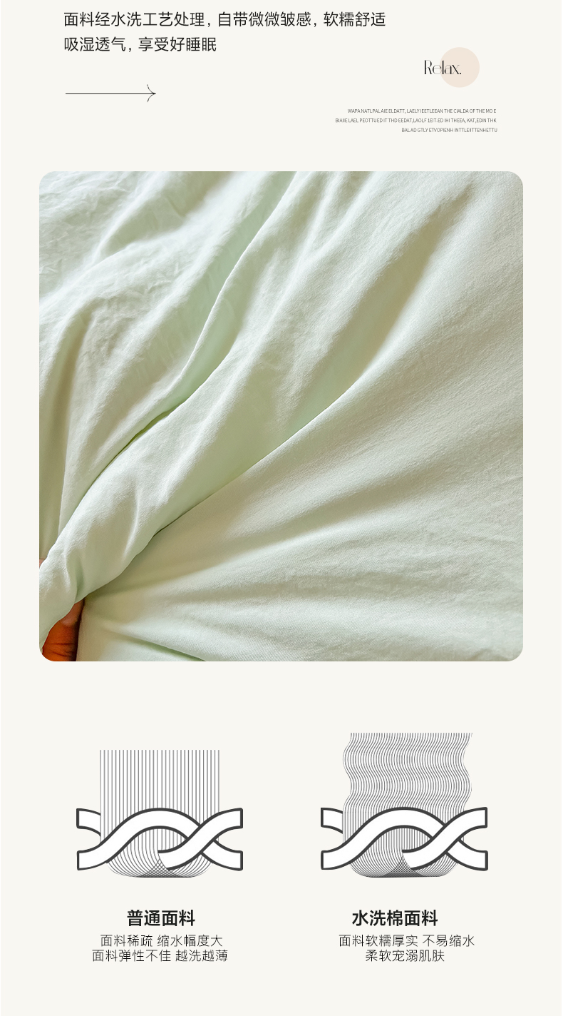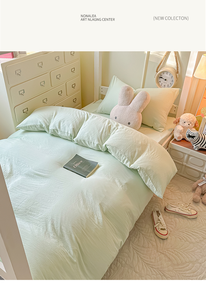 商品名称:韩巢家纺 2024新款学生宿舍员工寝室上下铺超柔水洗棉单件被套-纯色系列(提供卖家秀) 水洗棉浅绿