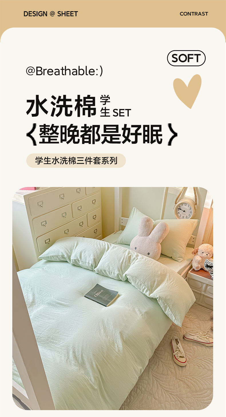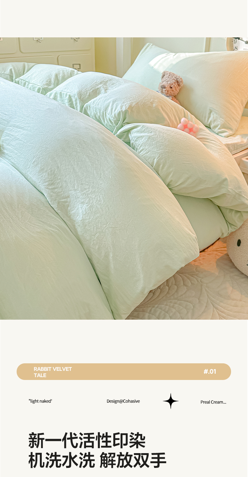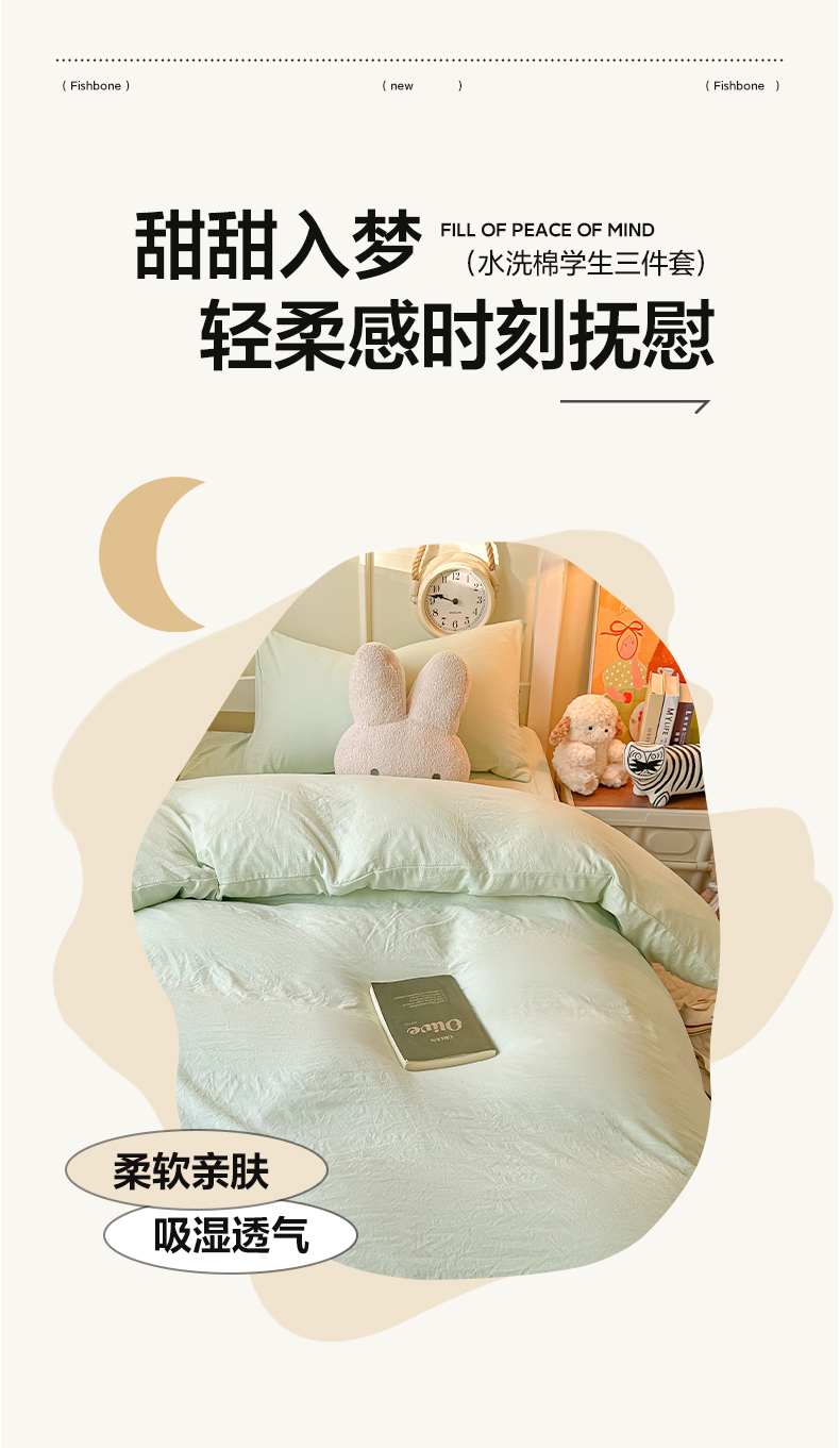商品名称:韩巢家纺 2024新款学生宿舍员工寝室上下铺超柔水洗棉单件被套-纯色系列(提供卖家秀) 水洗棉浅绿
