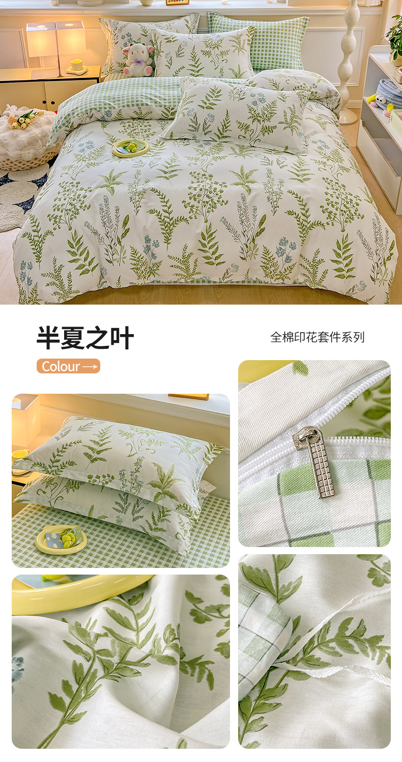 绵庭家纺 2024新款全棉印花套件系列四件套 半夏之叶