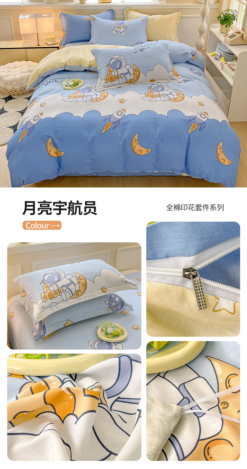绵庭家纺 2024新款全棉印花套件系列四件套 月亮宇航员