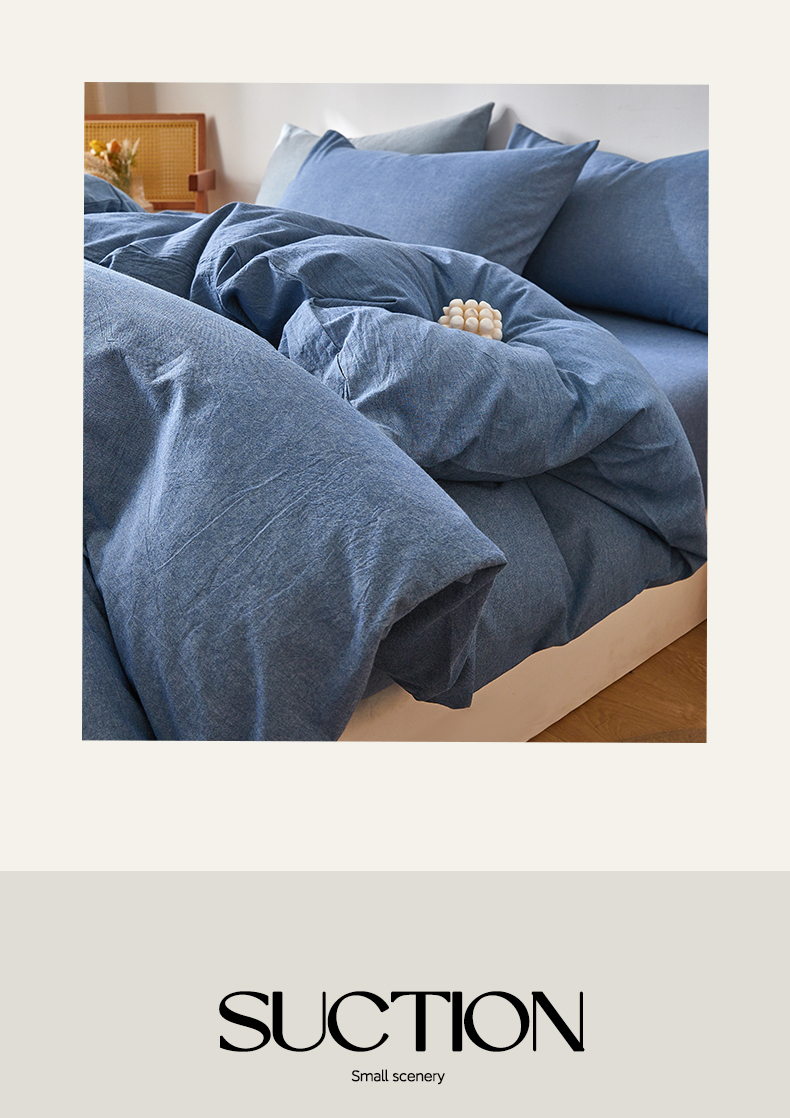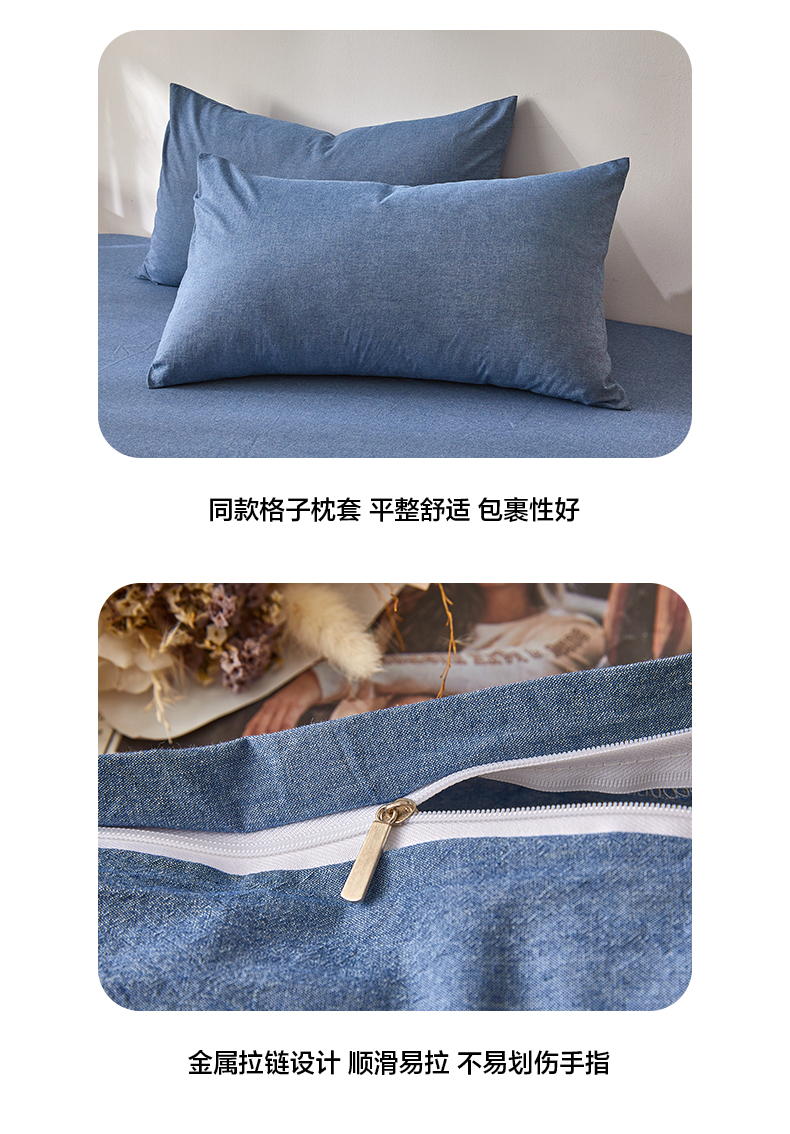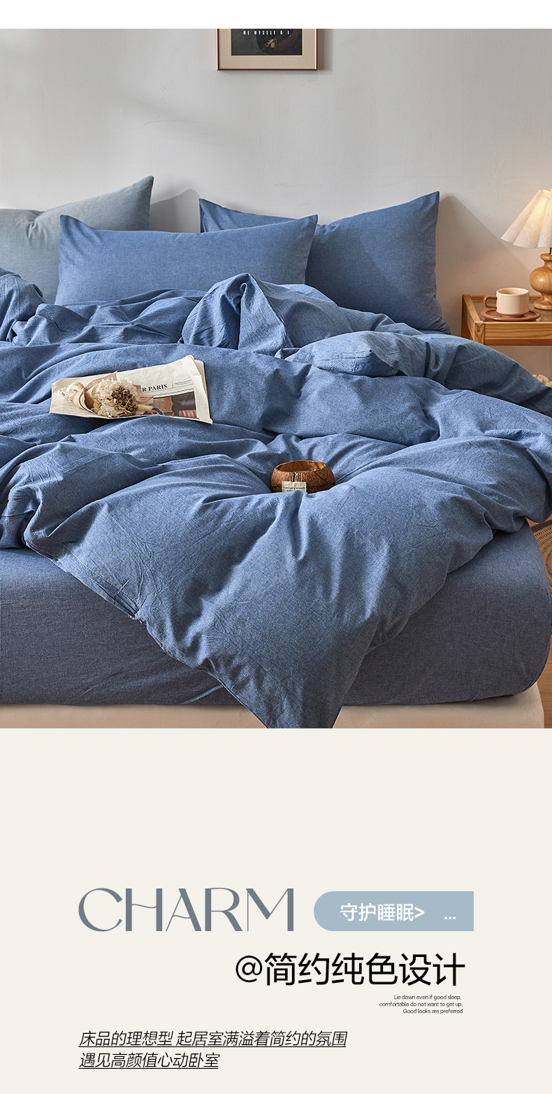 当前位置: 91家纺网 > 商品网购 > 床品套件 > 四件套 > 全棉普通四件套 > 2025新款全棉色织水洗棉四件套被套三件套系列 牛仔蓝