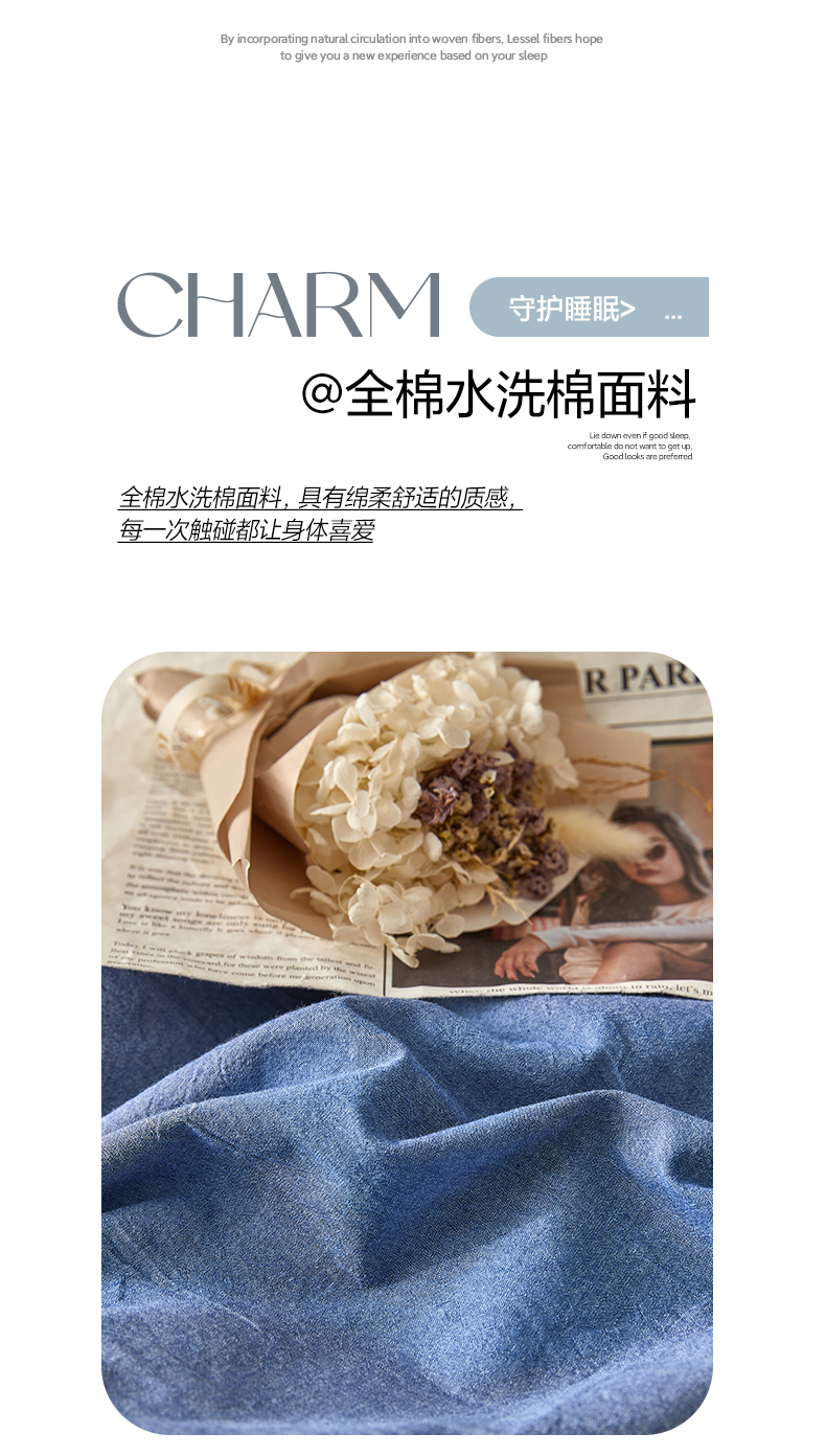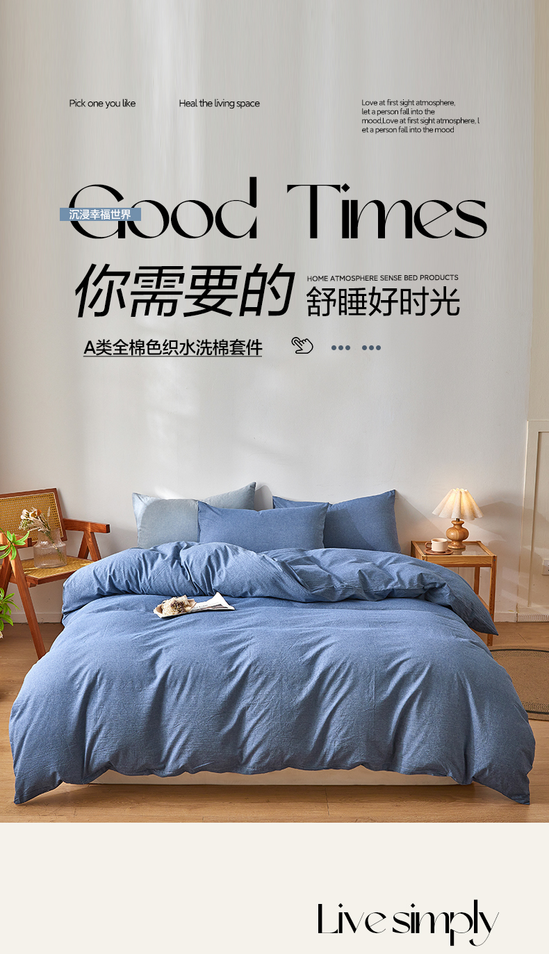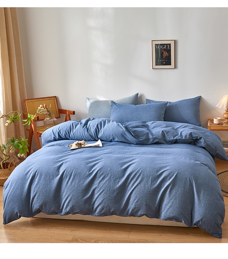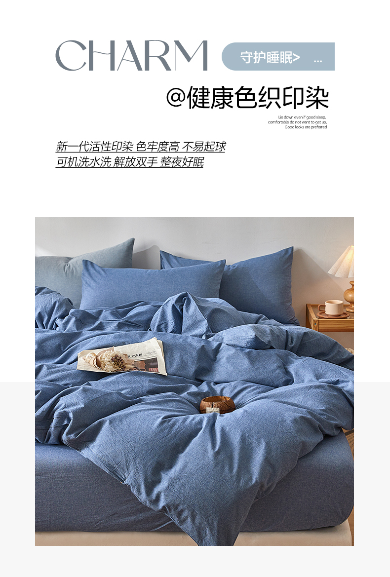 当前位置: 91家纺网 > 商品网购 > 床品套件 > 四件套 > 全棉普通四件套 > 2025新款全棉色织水洗棉四件套被套三件套系列 牛仔蓝