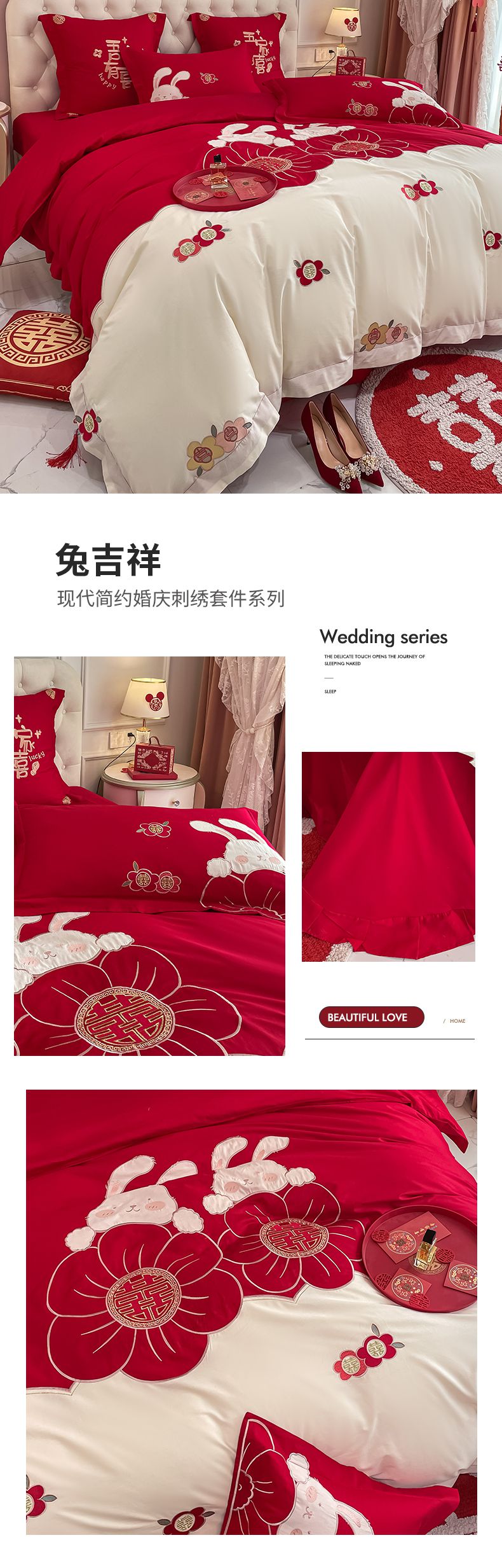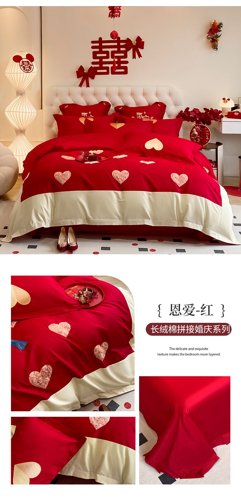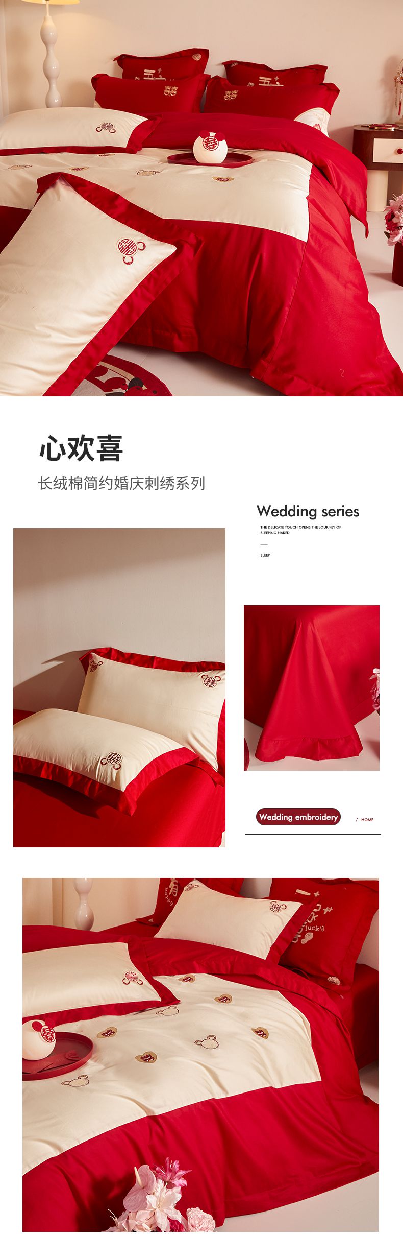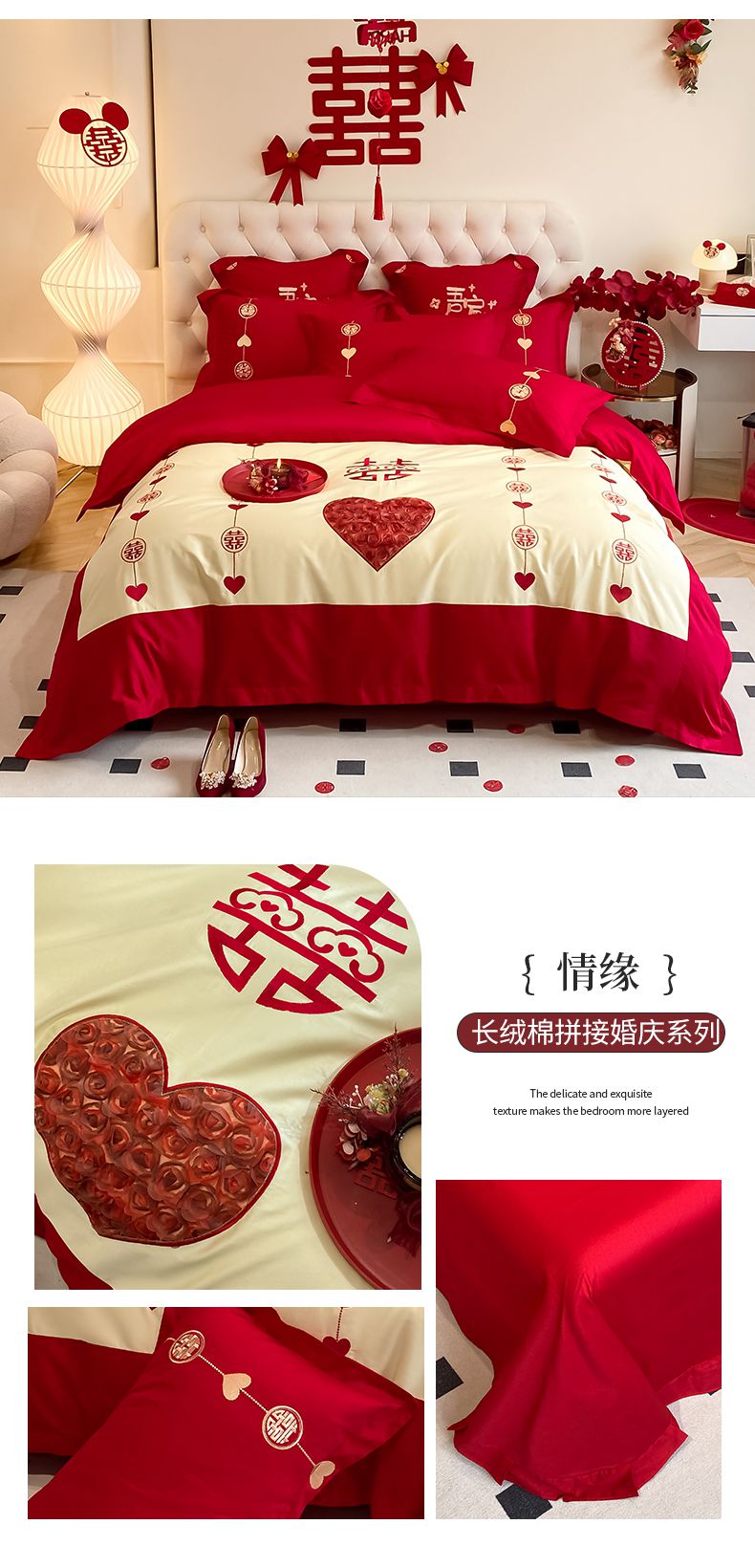 当前位置: 91家纺网 > 商品网购 > 床品套件 > 四件套 > 婚庆四件套 > 玉雅家纺 2025新款60支长绒棉时尚拼色浮雕刺绣婚庆四件套 好运锦鲤
