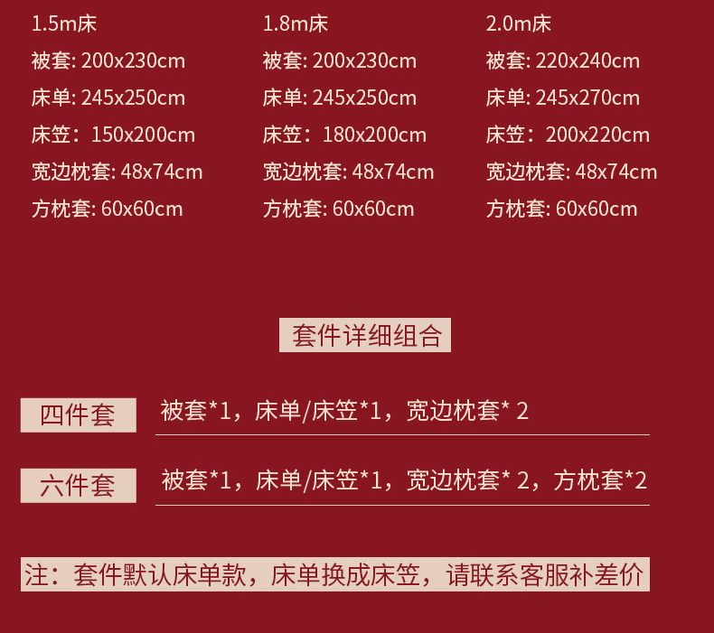 1.8m床笠款六件套 | ¥295.00 |