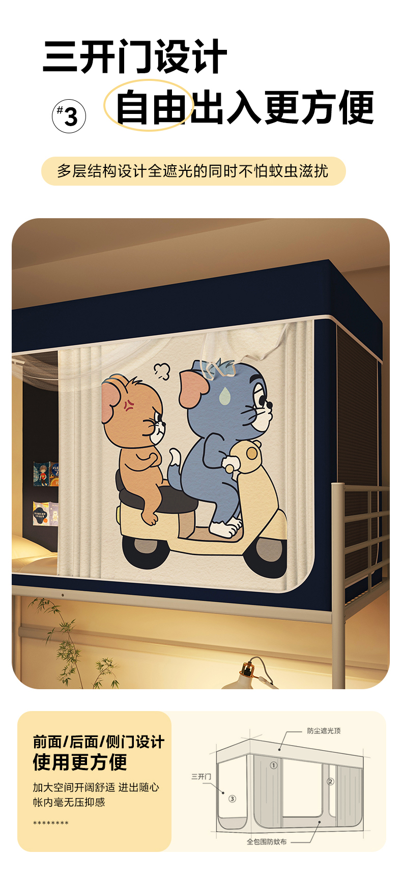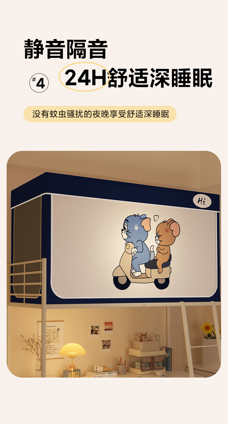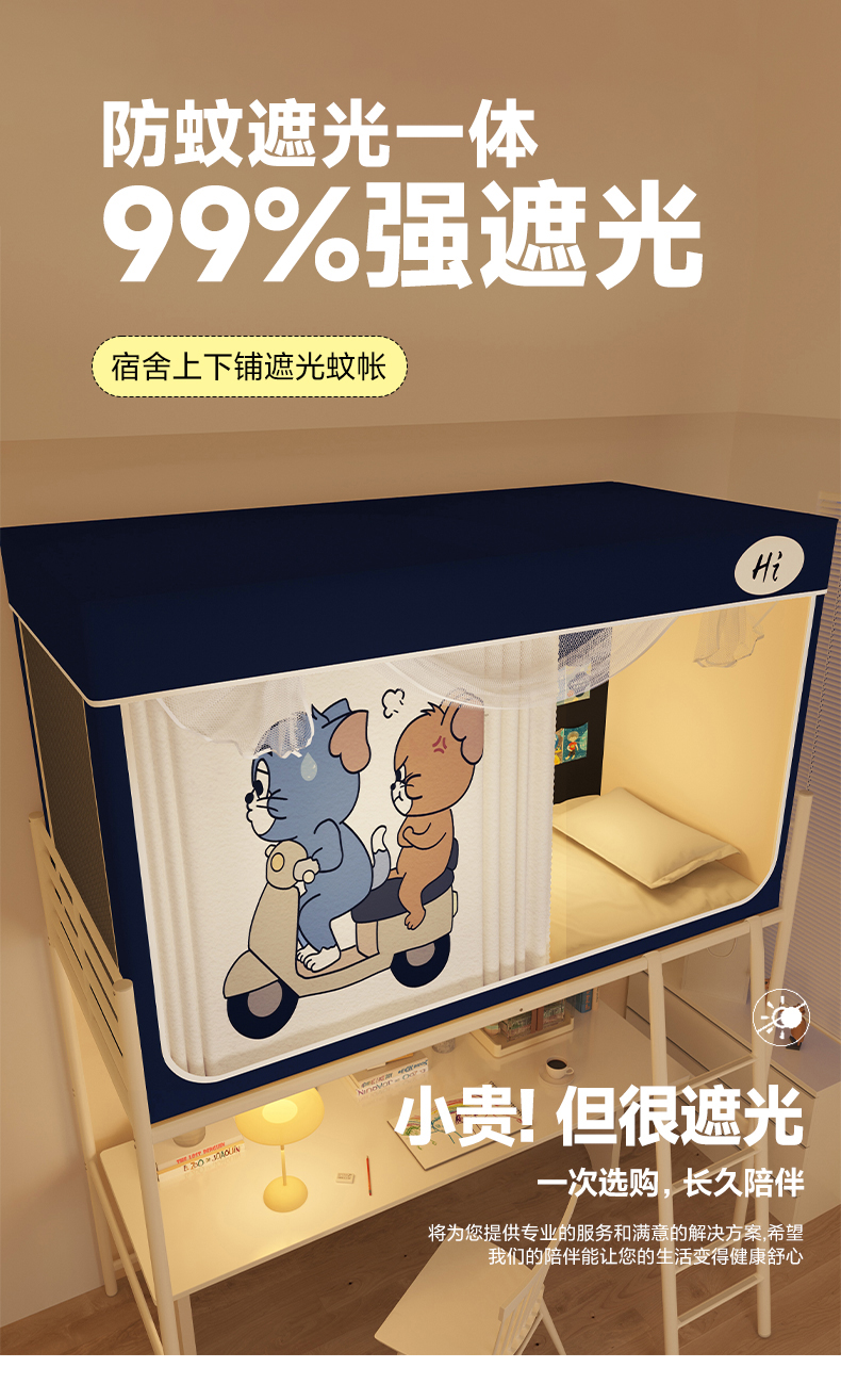 当前位置: 91家纺网 > 商品网购 > 床上用品 > 蚊帐 > 学生蚊帐 > 安金蚊帐 2024新款防蚊遮光一体99%强遮光学生宿舍上下铺遮光学生蚊帐-系列一 猫和老鼠