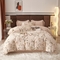 (总)启航家居 2025爆款加厚牛奶绒织带剪花工艺四件套,爱玛粉,爱玛咖,路易白,路易橙,路易灰