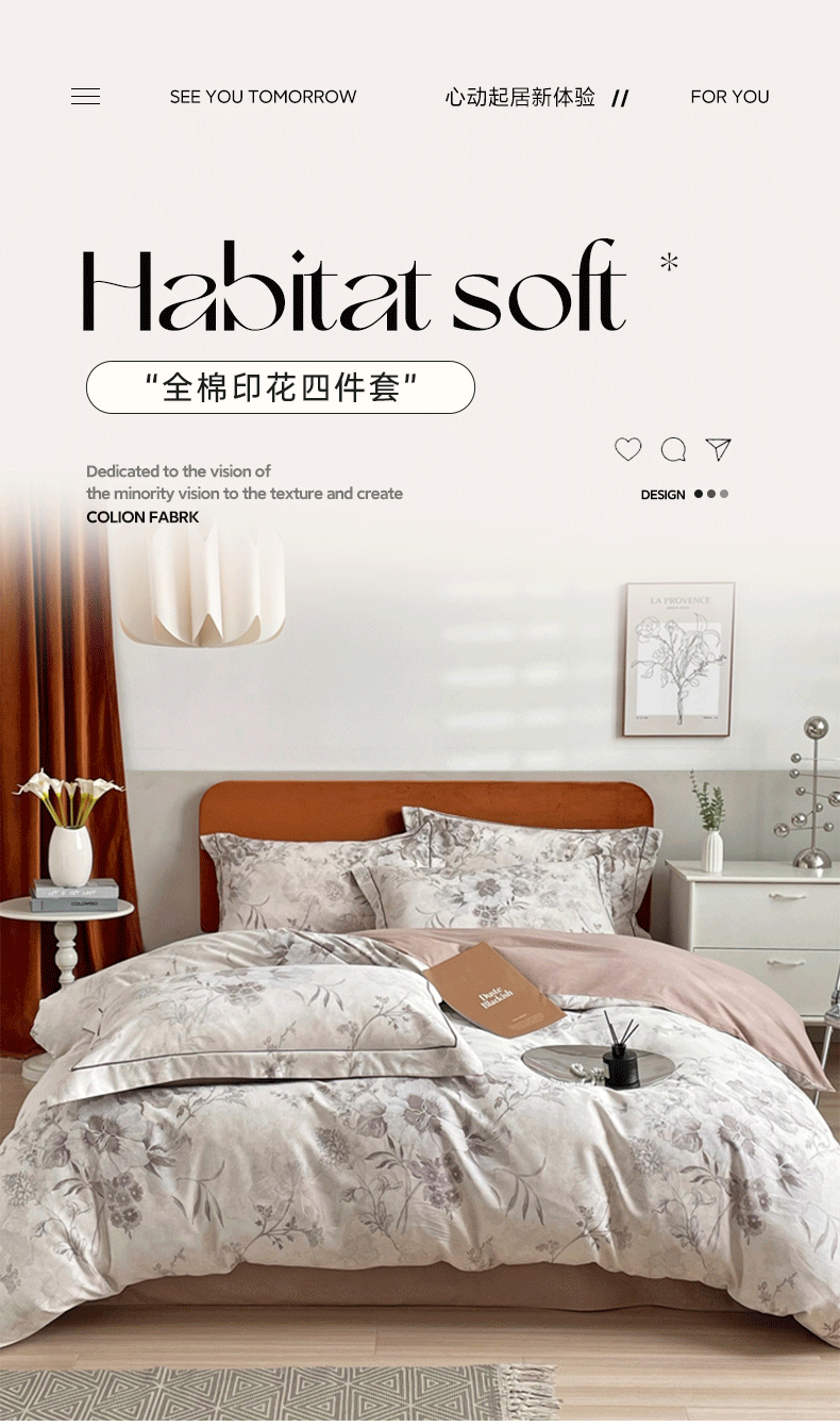 (总)启航家居 2025新款全棉铂金棉数码印花四件套,风香花倦,花的嫁纱,洛香忆梦绿,暮云春树灰,翩若惊鸿粉,普罗旺斯紫,新塞纳舞曲红,新塞纳舞曲紫