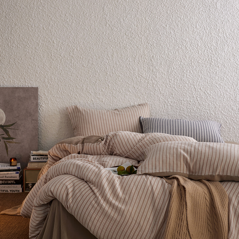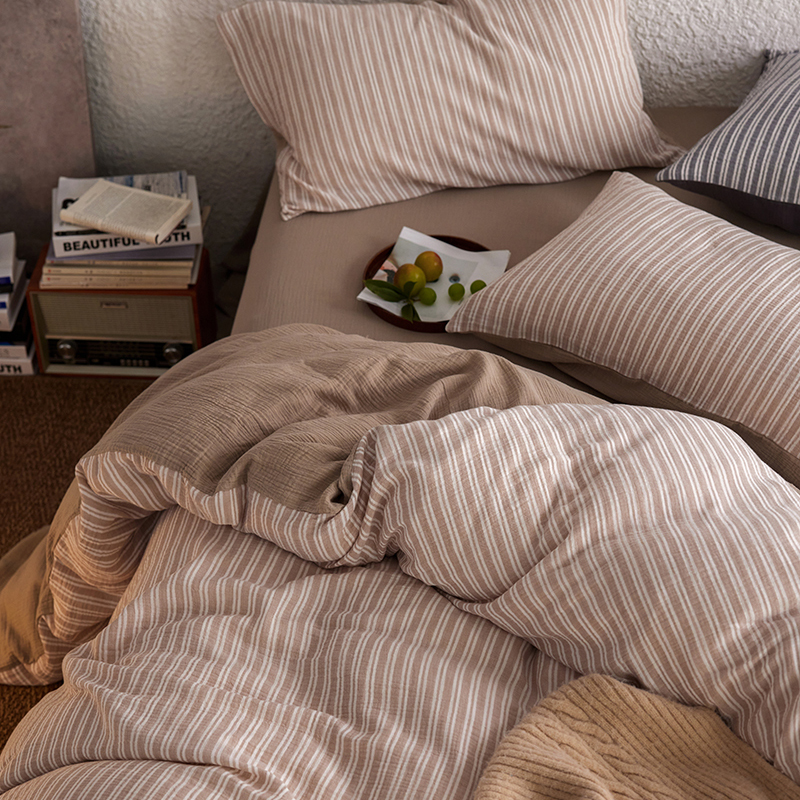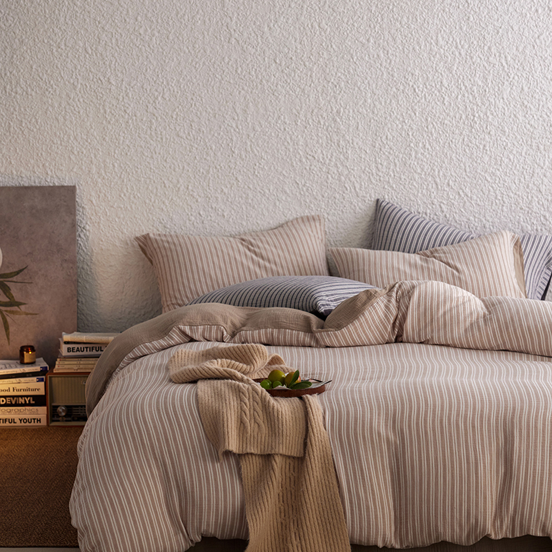 当前位置: 91家纺网 > 商品网购 > 床品套件 > 四件套 > 全棉普通四件套 > 2025新品尚美色织条纹绉纱系列--尚美可颂系列 尚美-可颂卡其