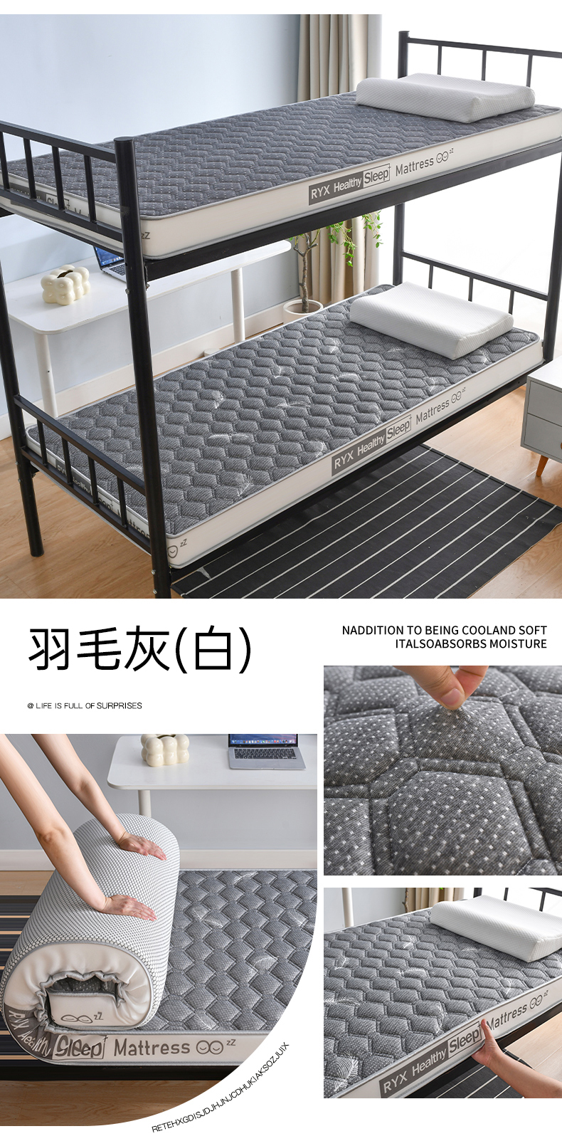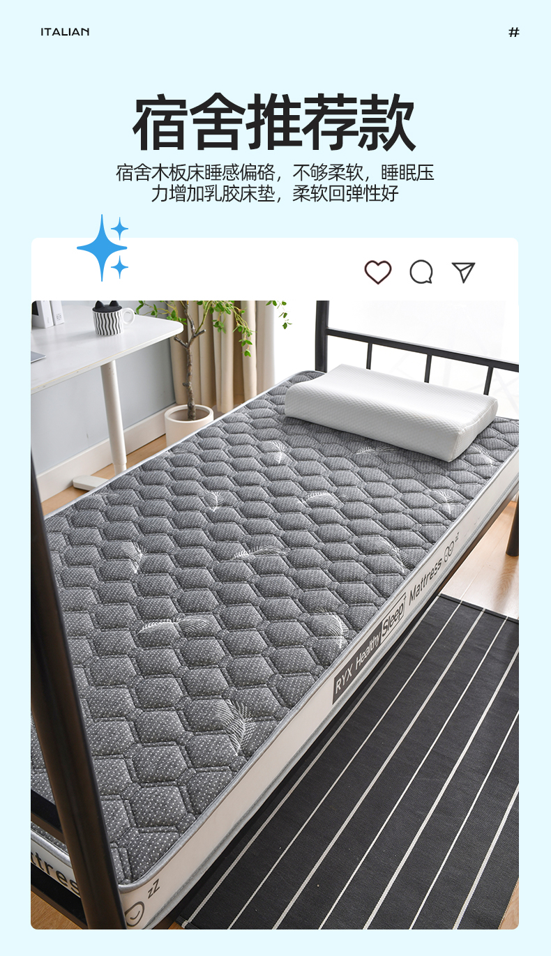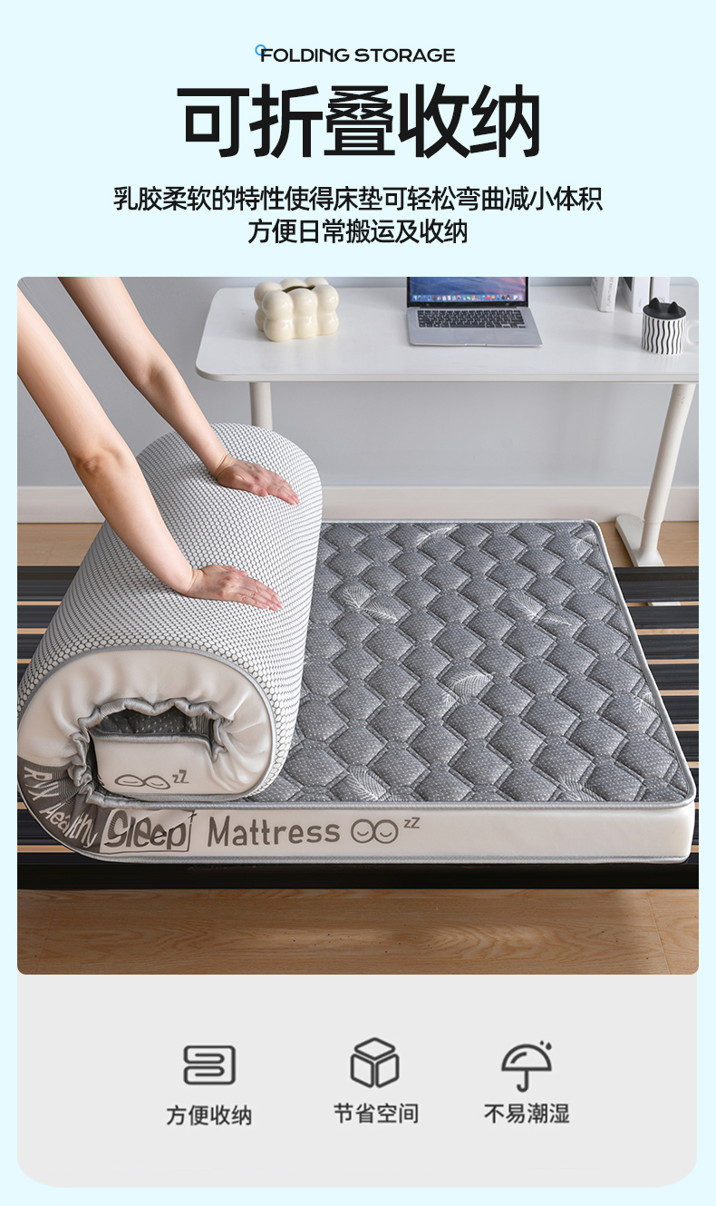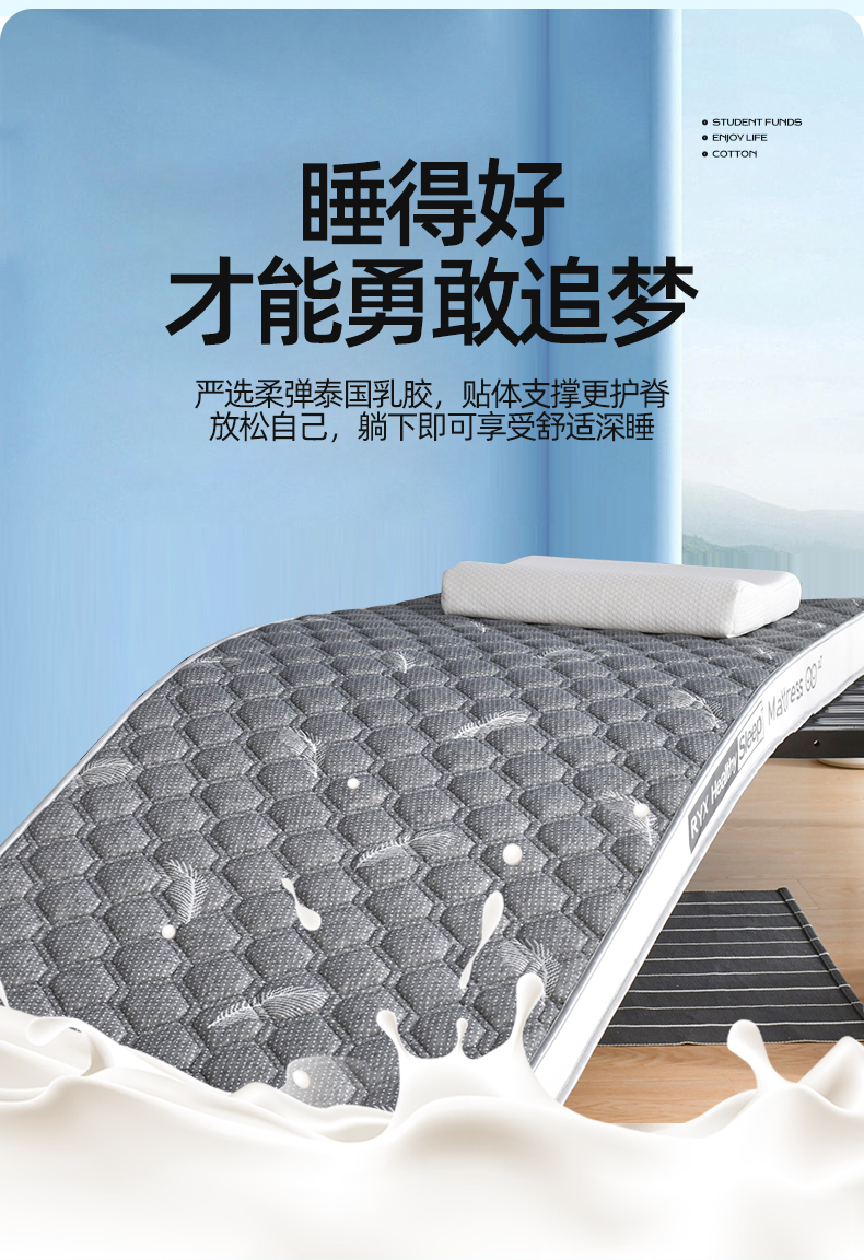 • 91家纺网 家纺一手货源 找家纺 顺发床垫 2025新款A类针织乳胶抗压棉乳胶床垫-学生款 羽毛灰(白)-6cm