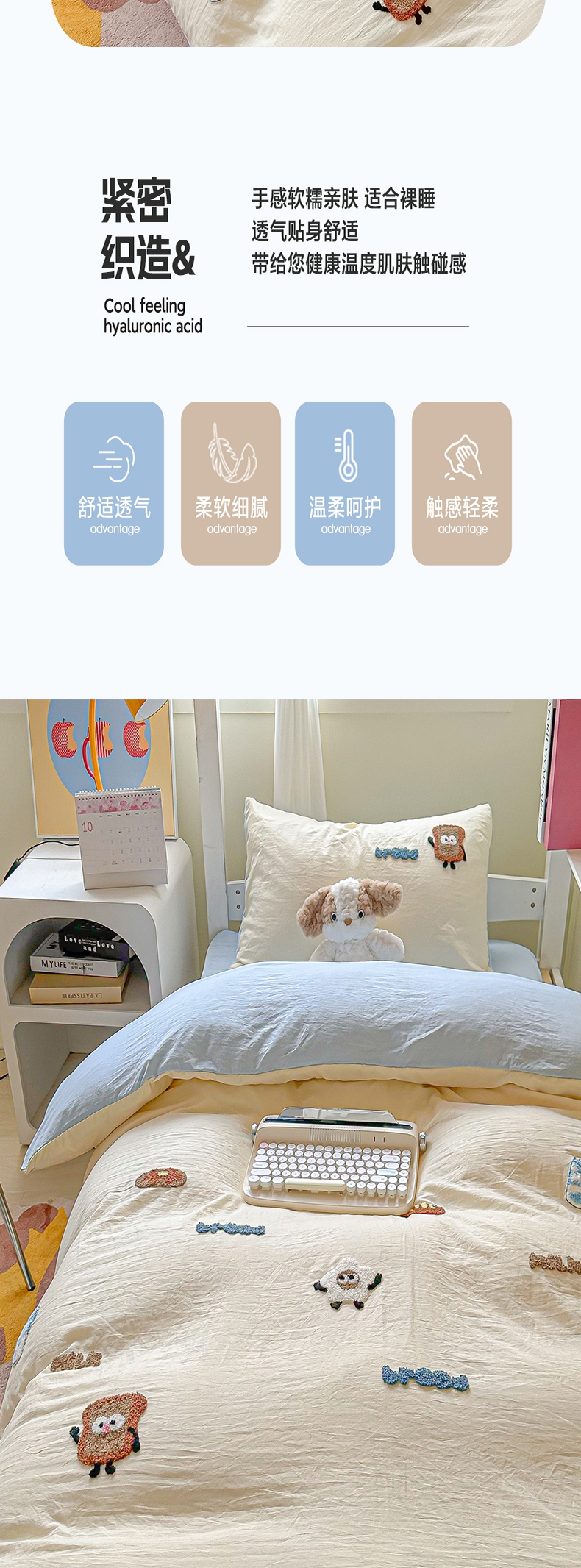 当前位置: 91家纺网 > 商品网购 > 床品套件 > 四件套 > 水洗棉四件套 > 盼季家纺 2024新款毛巾绣水洗棉学生三件套-面包达人 面包达人-奶黄绿