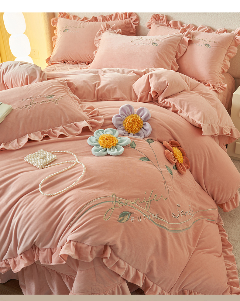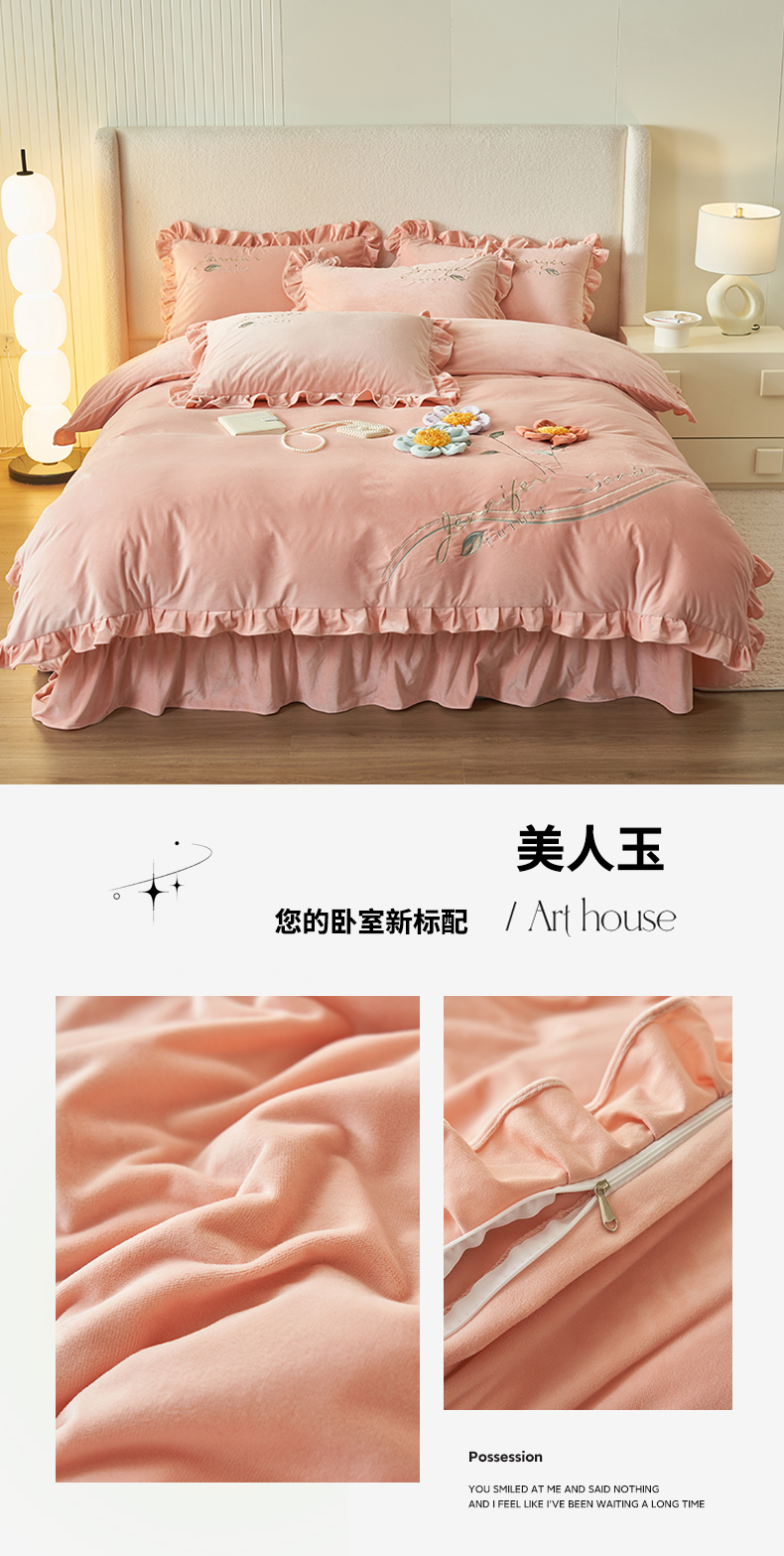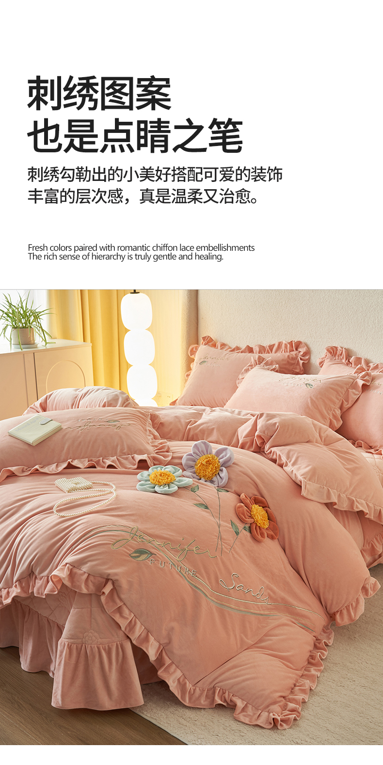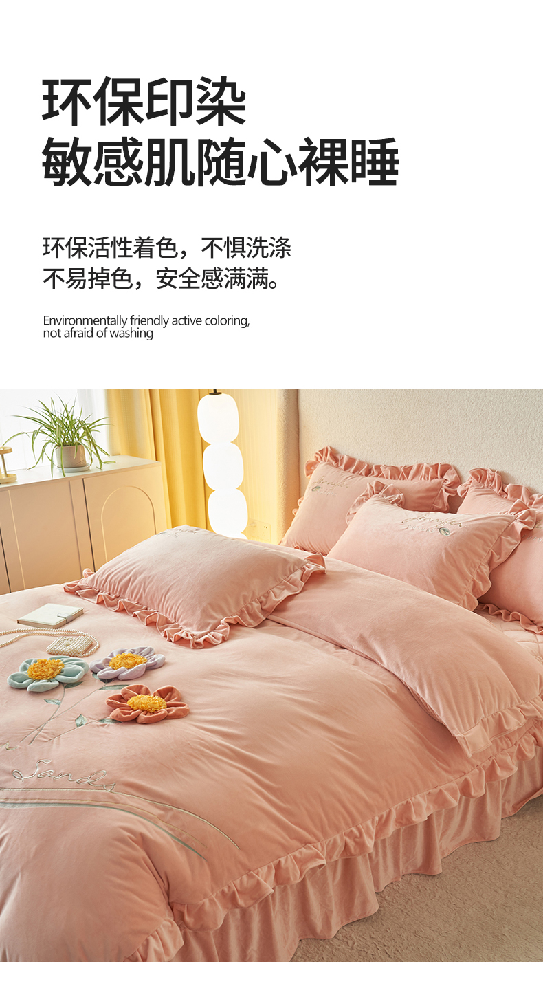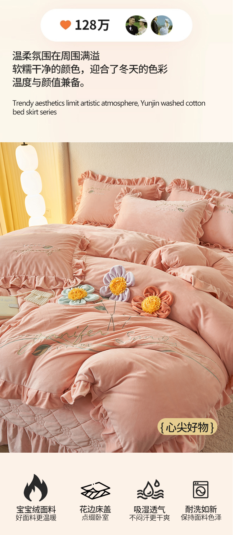 (总)恒爱 2022秋冬水晶绒翩翩花舞夹棉床裙四件套,大红色,豆沙红,橄榄绿,公主粉,桔色,咖啡色,孔雀绿,拉菲红,罗兰紫,玫红色,美人玉,米白色,米驼色,抹茶绿,浅灰色,紫色