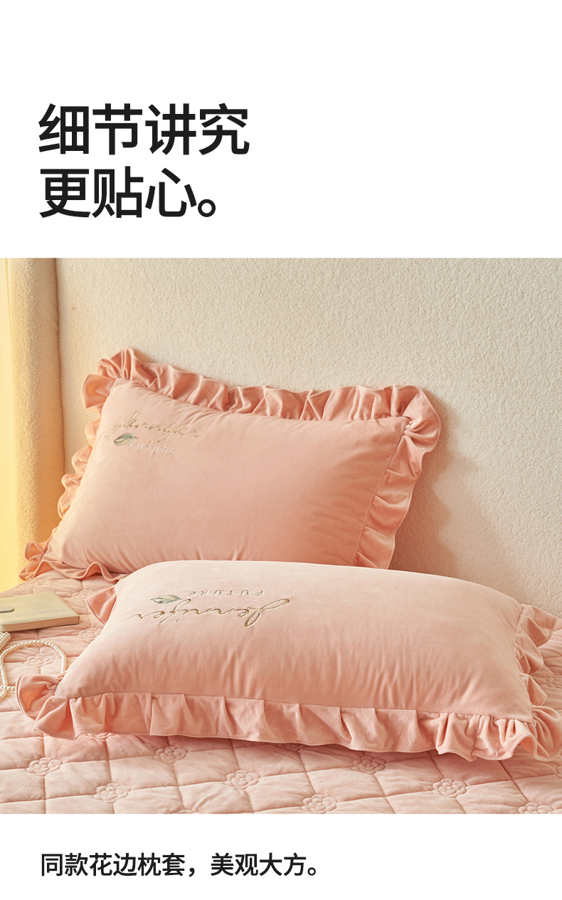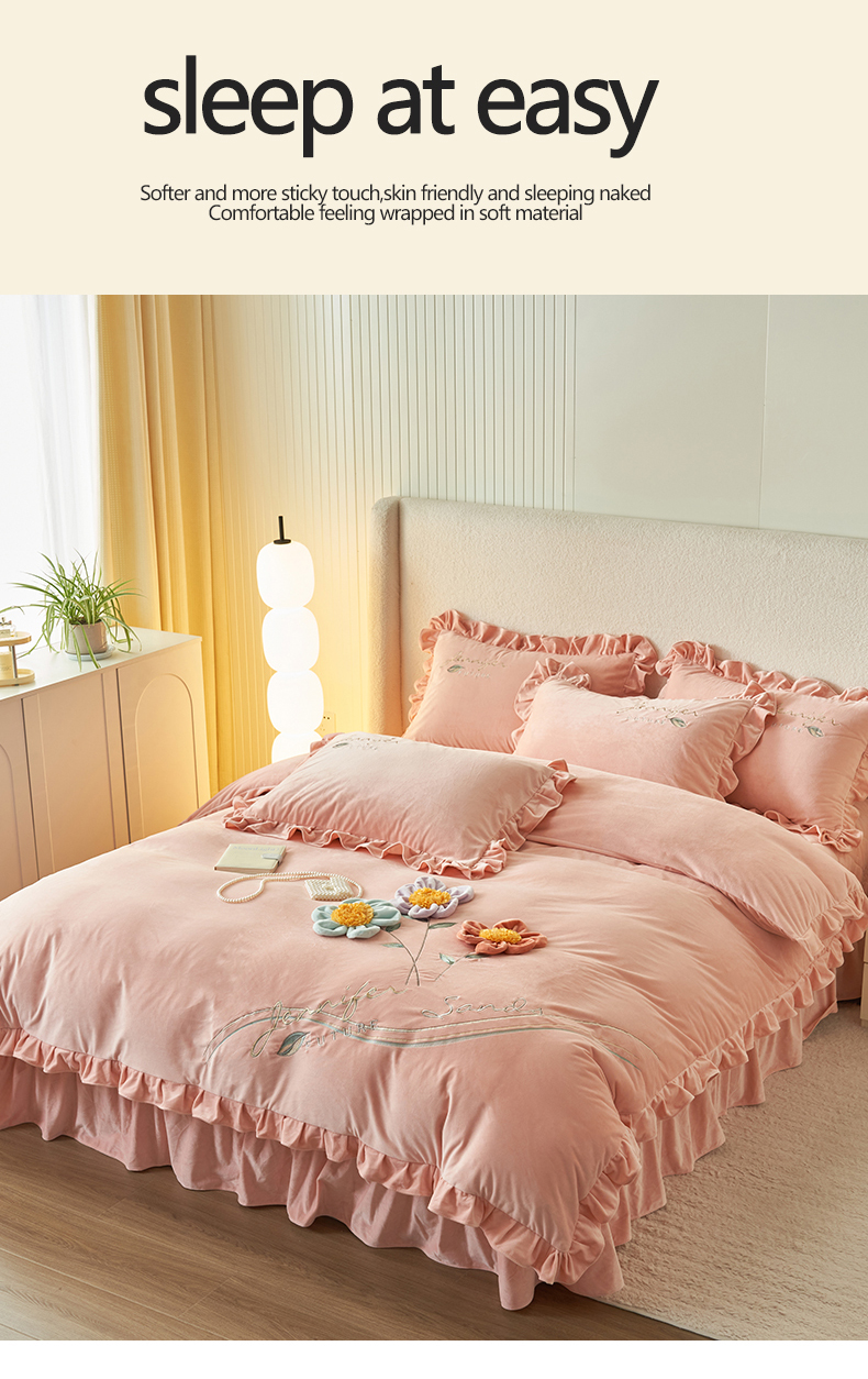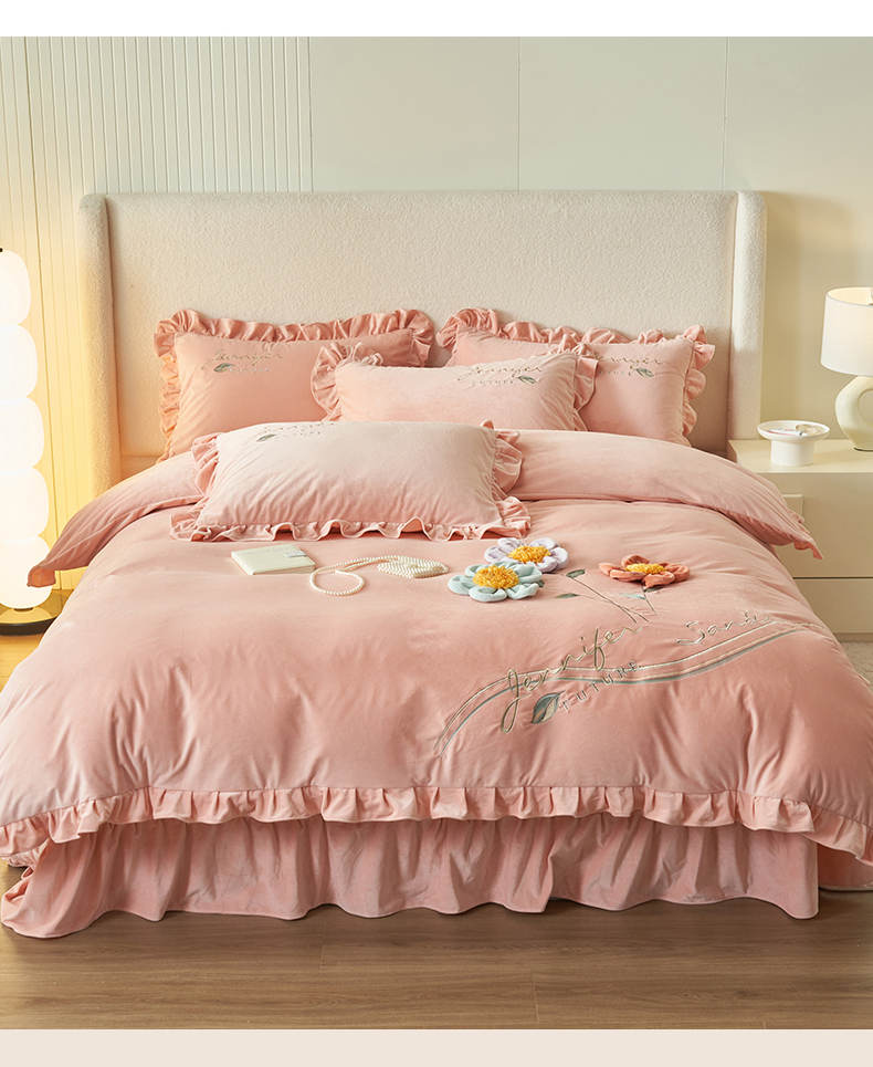 (总)恒爱家纺 2025新款牛奶绒贴布绣夹棉床裙四件套,豆沙红,浪漫紫,天空蓝,温馨粉,象牙白