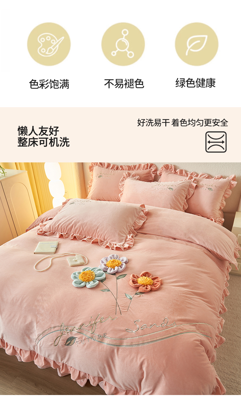 商品名称:2024新款向阳花开宝宝绒刺绣四件套 美人玉