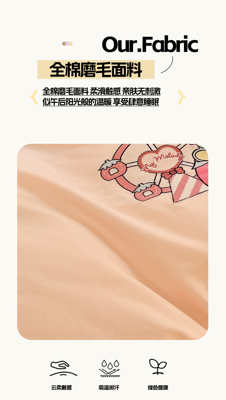 商品名称:雅居纺家纺 2024新款全棉磨毛三丽鸥库洛米正版授权四件套 草莓美乐蒂