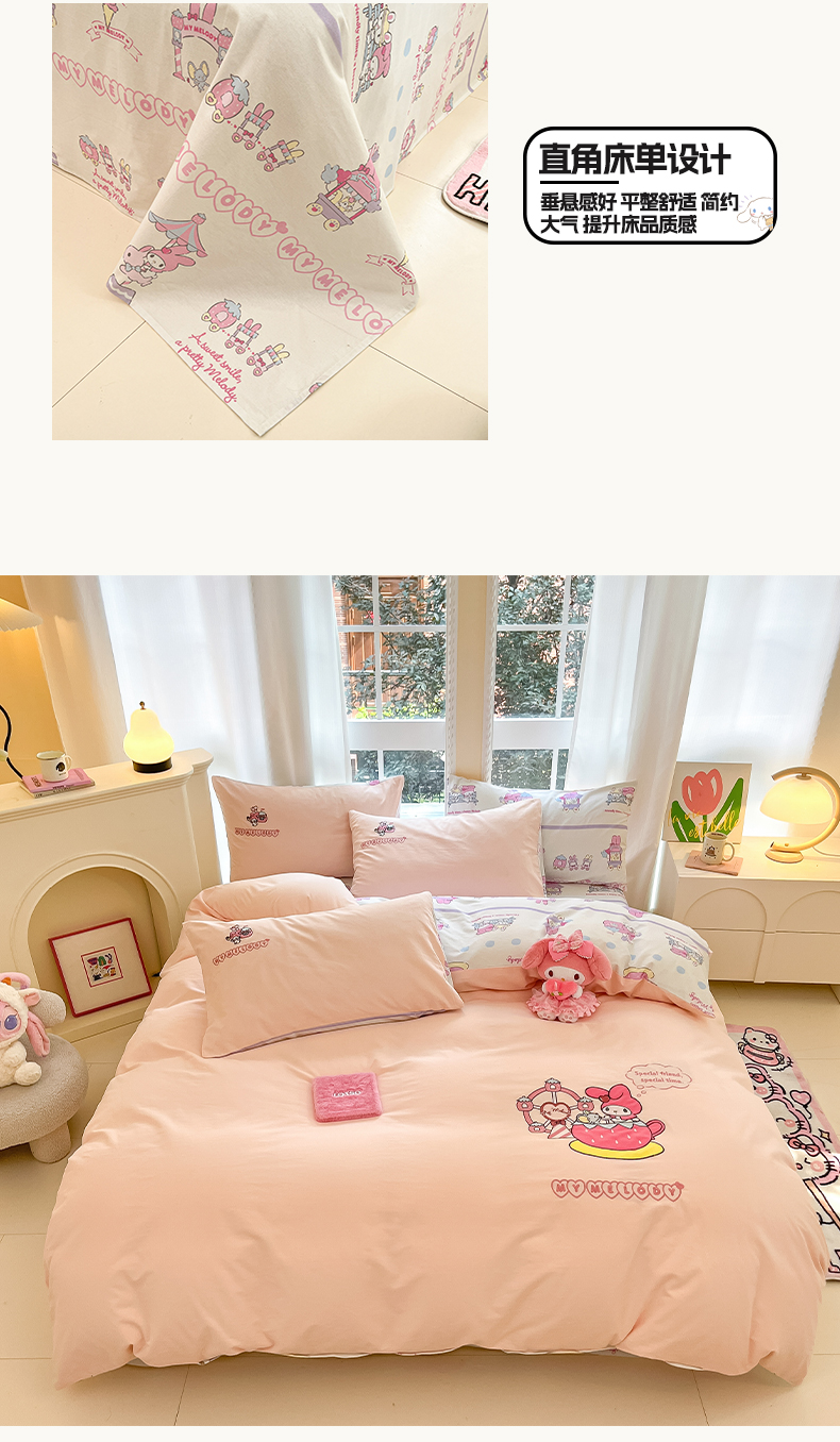 雅居纺家纺 2024新款全棉磨毛三丽鸥库洛米正版授权四件套 草莓美乐蒂
