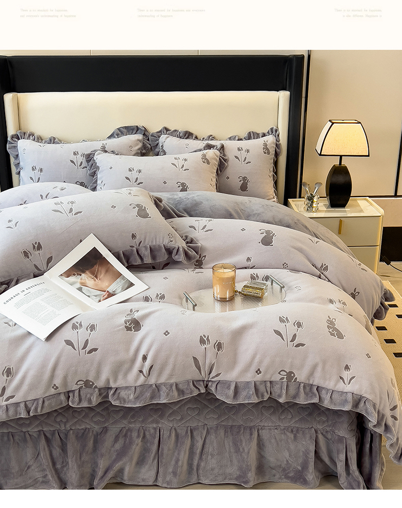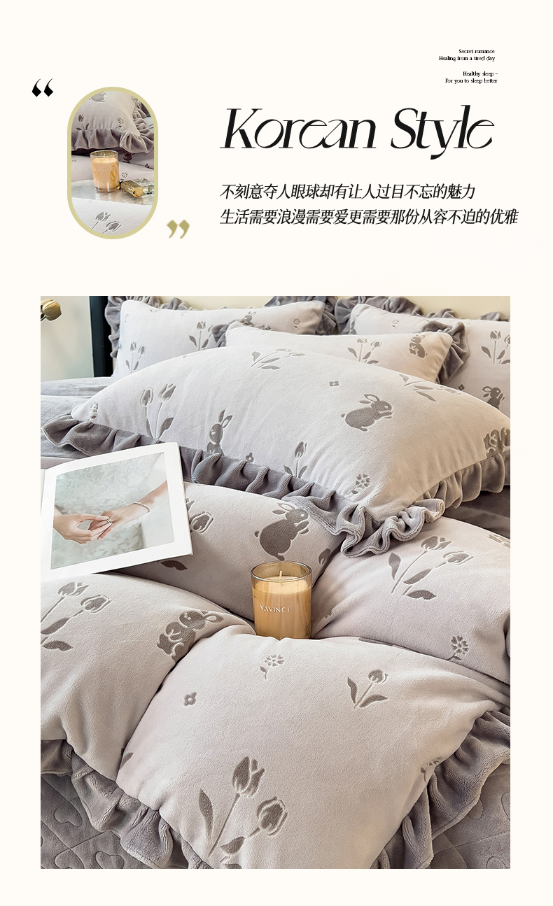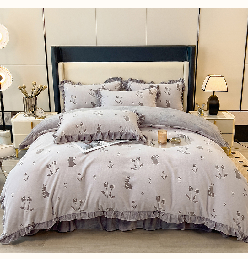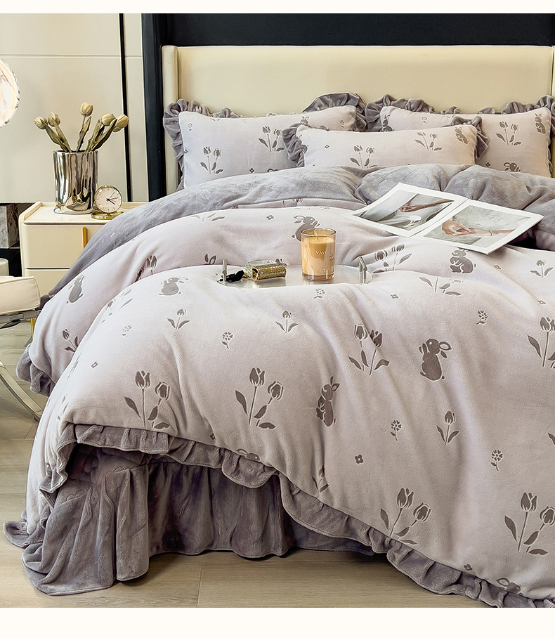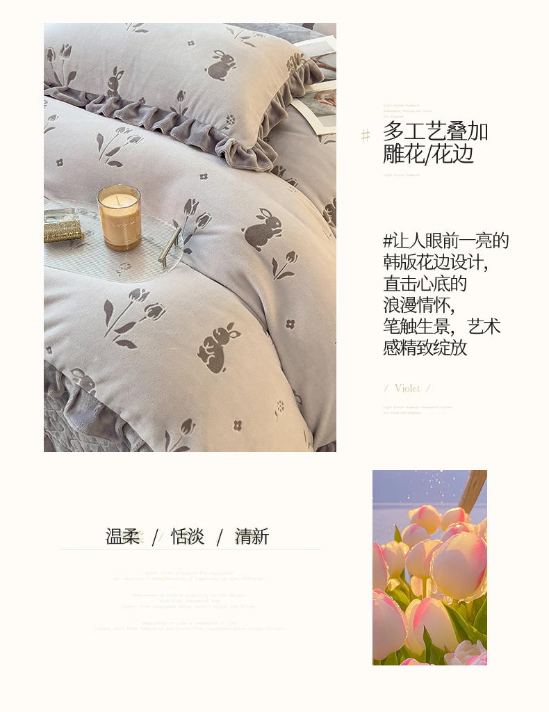 2024新品A类牛奶绒韩版雕花四件套 恋爱兔-浅咖