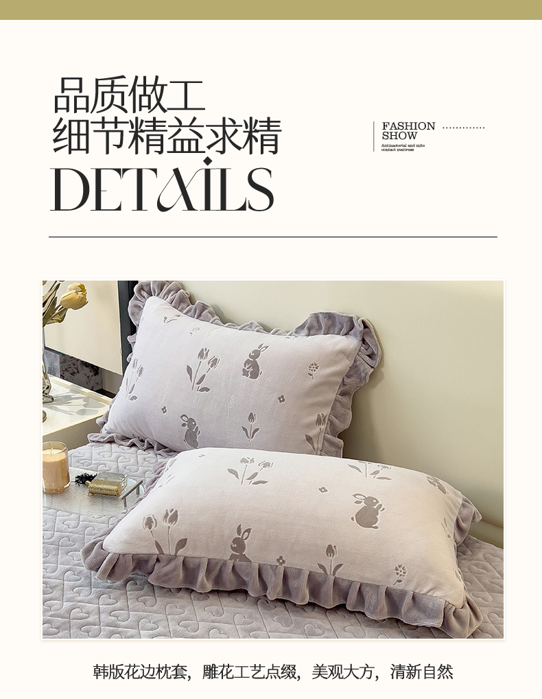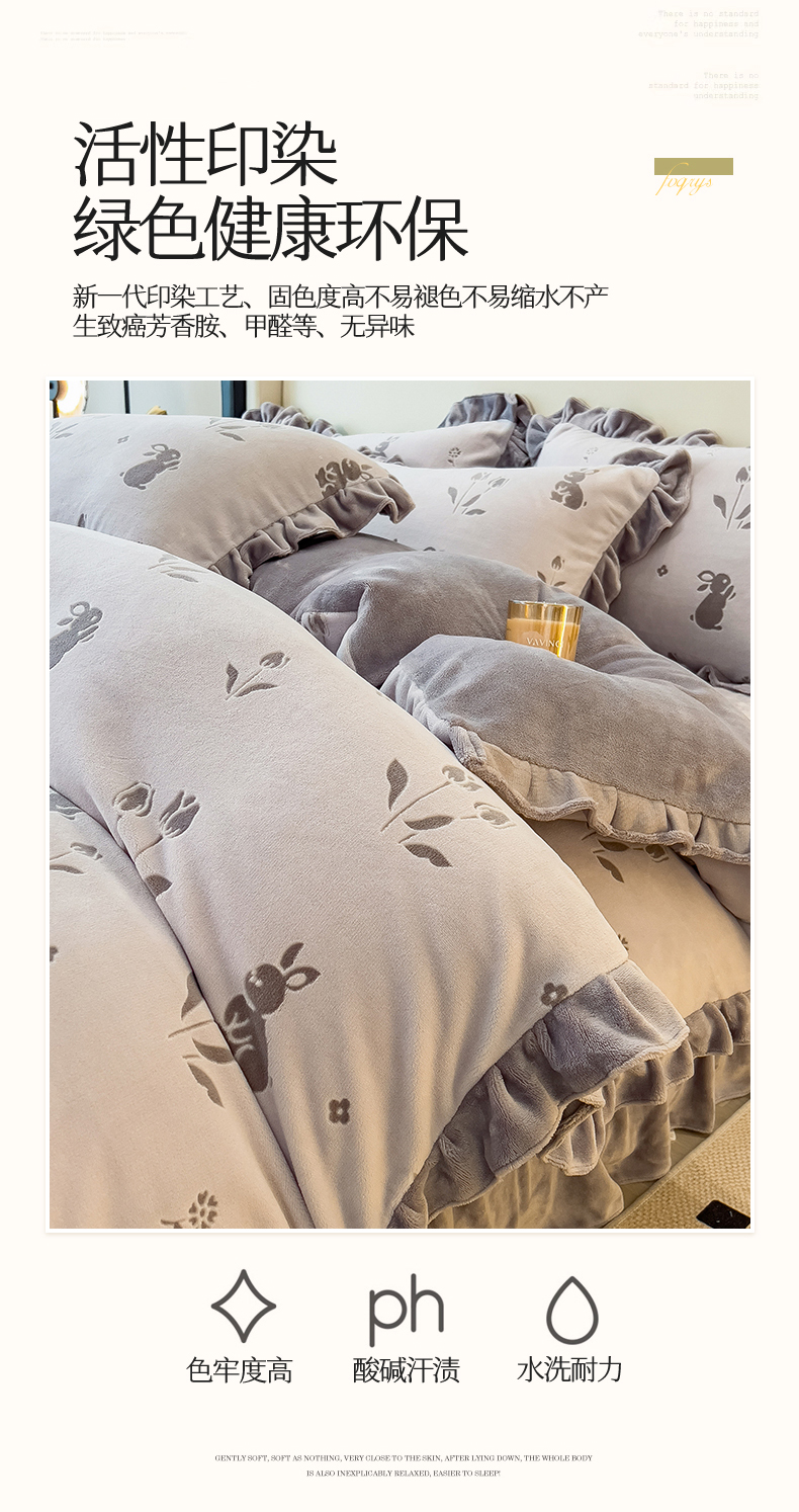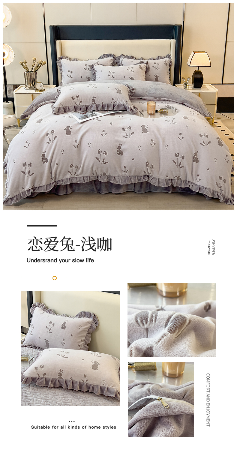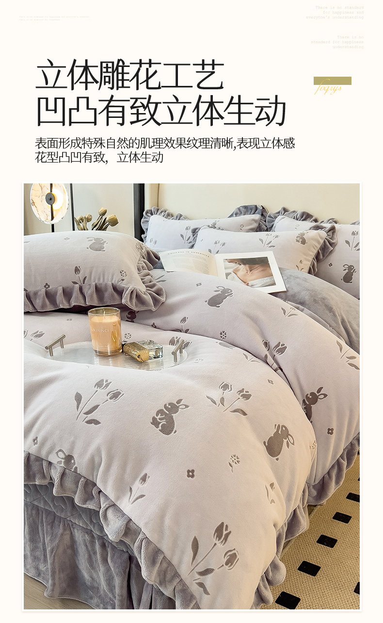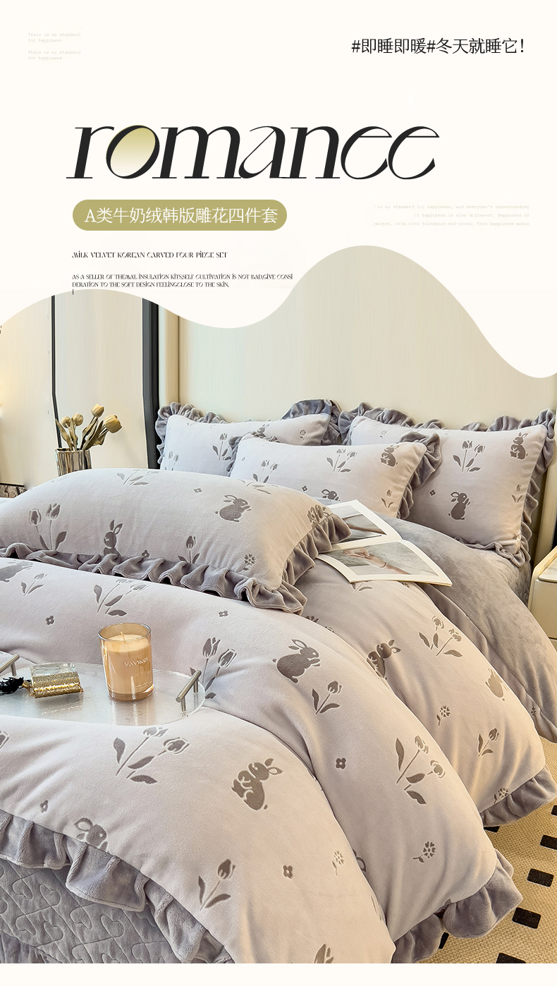 商品名称:2024新品A类牛奶绒韩版雕花四件套 恋爱兔-浅咖