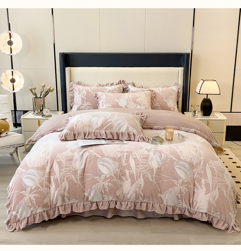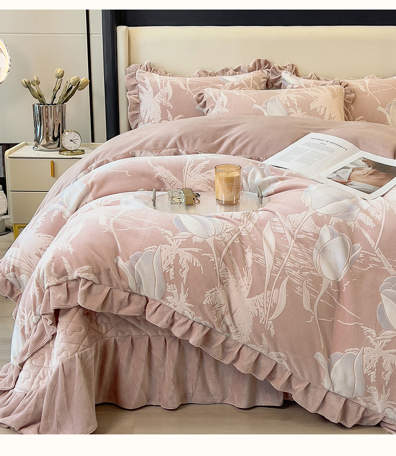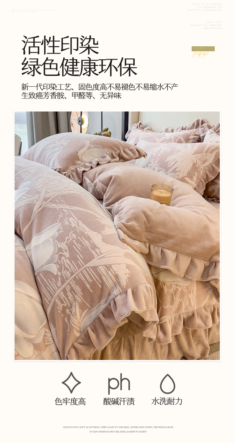 (总)恒爱 2022秋冬水晶绒翩翩花舞夹棉床裙四件套,大红色,豆沙红,橄榄绿,公主粉,桔色,咖啡色,孔雀绿,拉菲红,罗兰紫,玫红色,美人玉,米白色,米驼色,抹茶绿,浅灰色,紫色