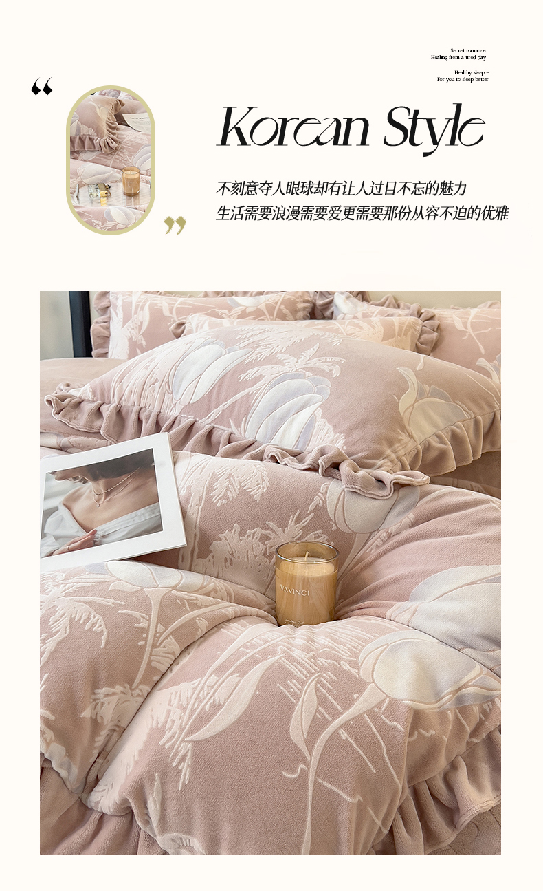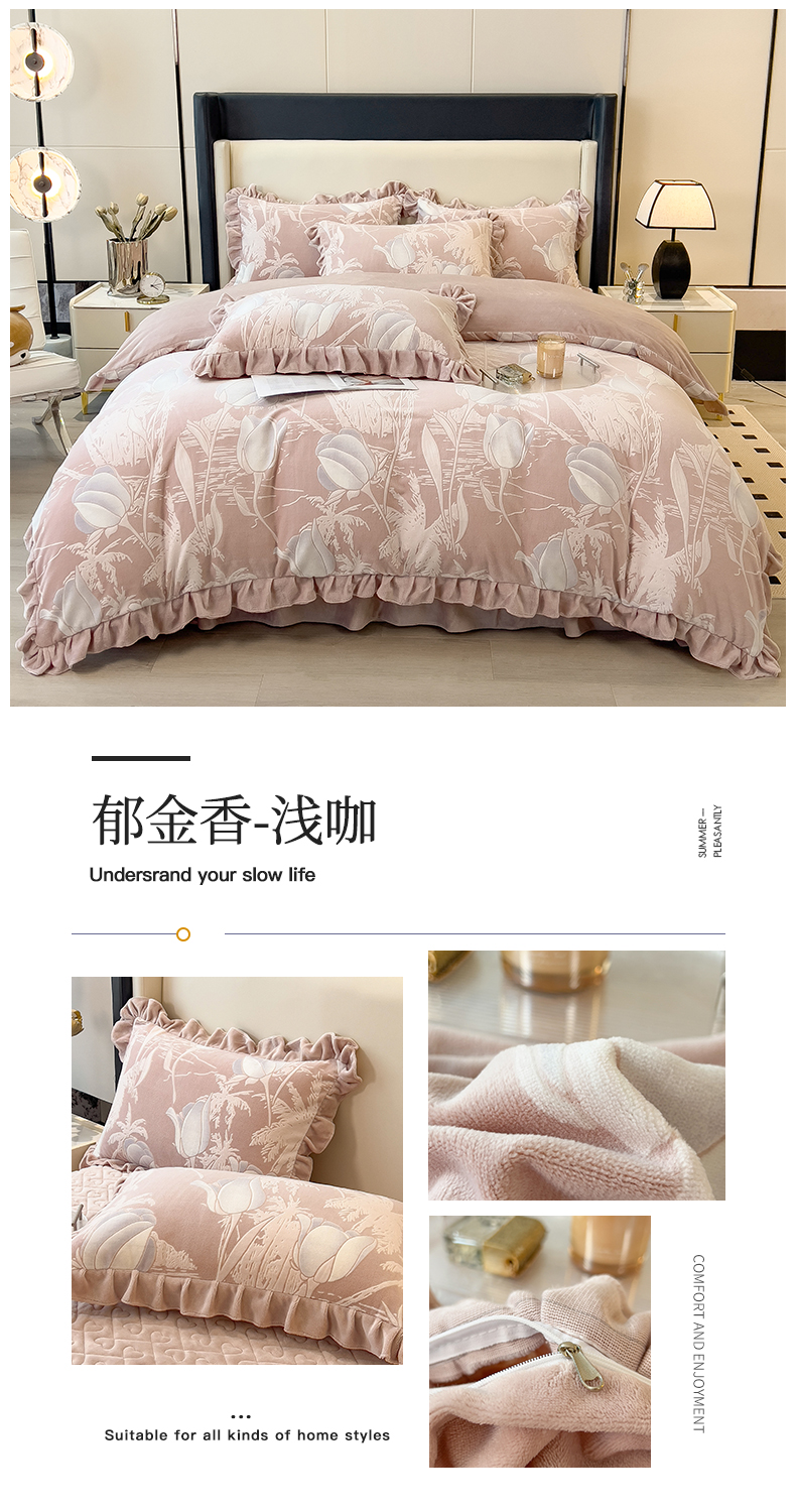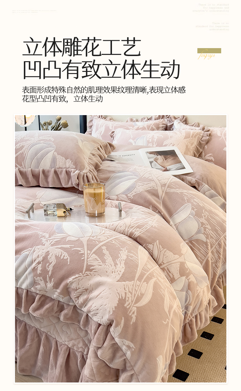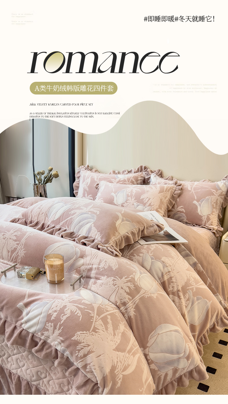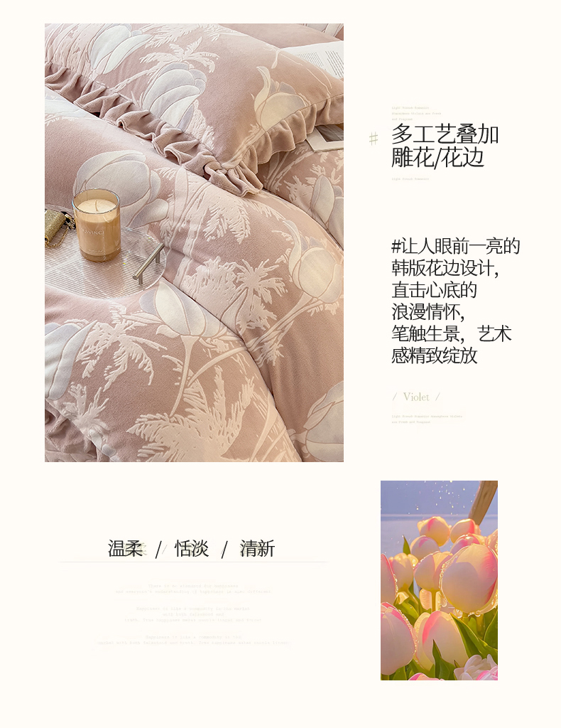 商品名称:2024新品A类牛奶绒韩版雕花四件套 郁金香-浅咖