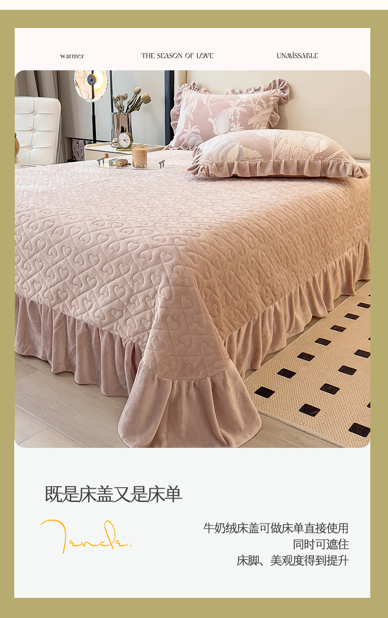 (总)恒爱家纺 2025新款牛奶绒贴布绣夹棉床裙四件套,豆沙红,浪漫紫,天空蓝,温馨粉,象牙白