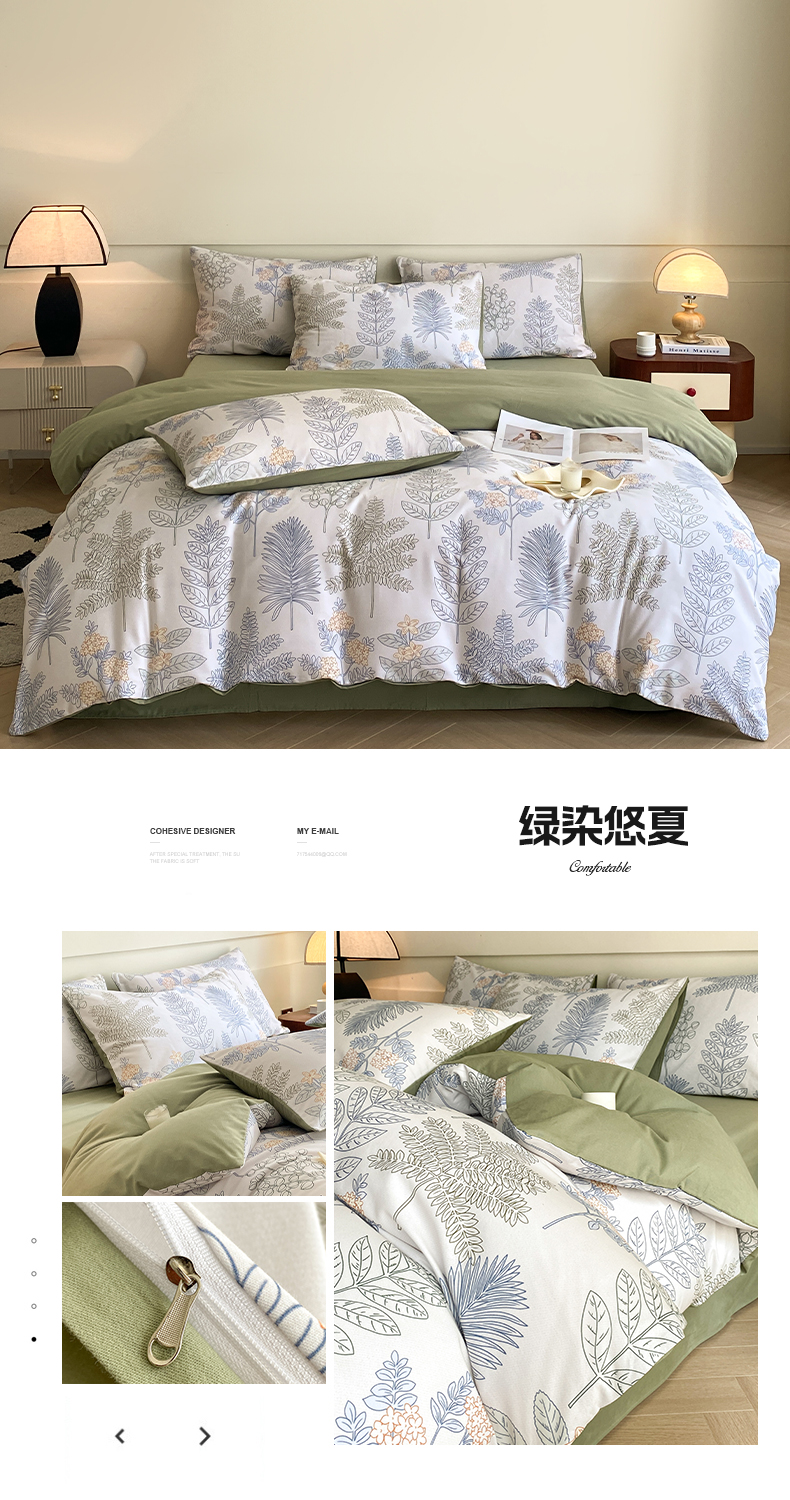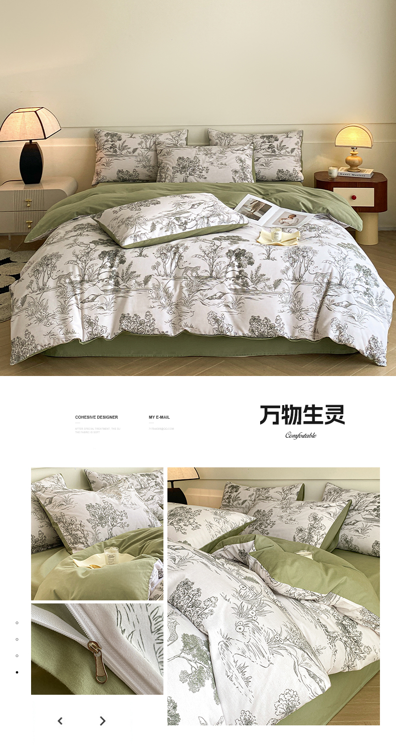 (总)雅居纺家纺 2022新款13070全棉印花四件套,波纹,多彩,简笔画,莓关系,奶油绿豹纹,倾心,数字