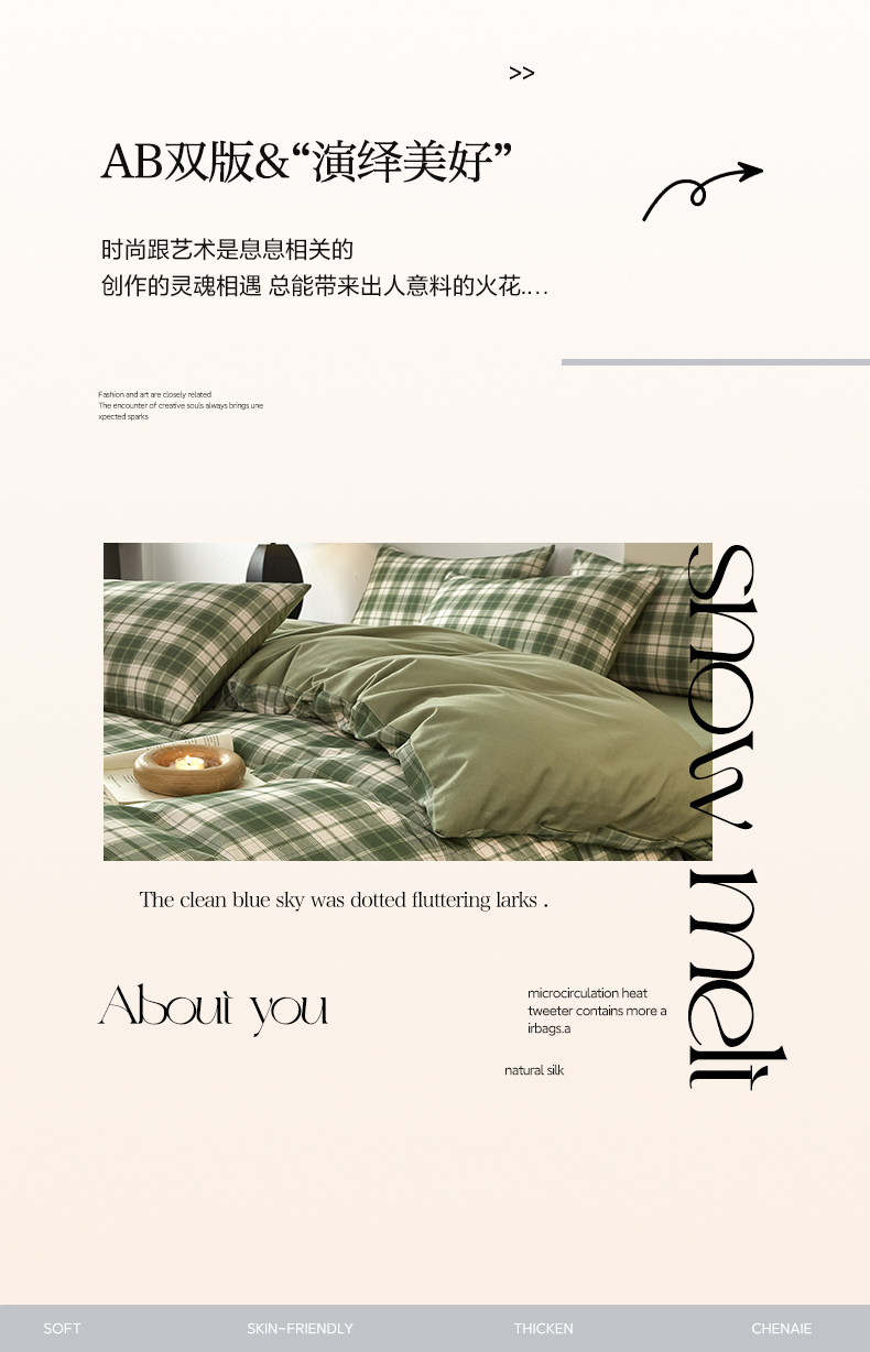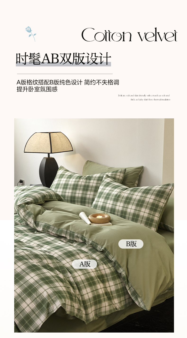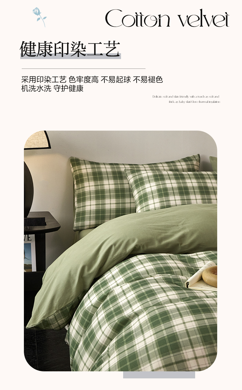 雅居纺家纺 2024新款全棉印花磨毛四件套 旋律-绿格