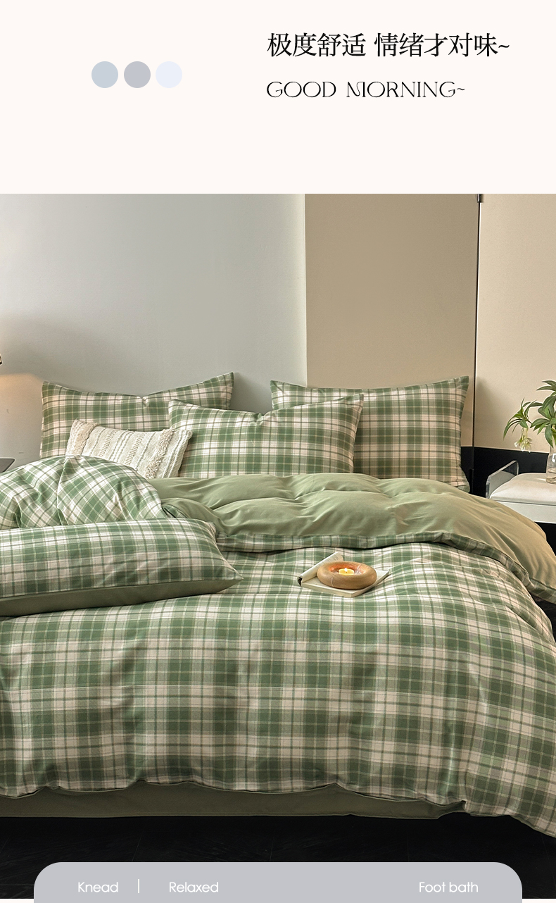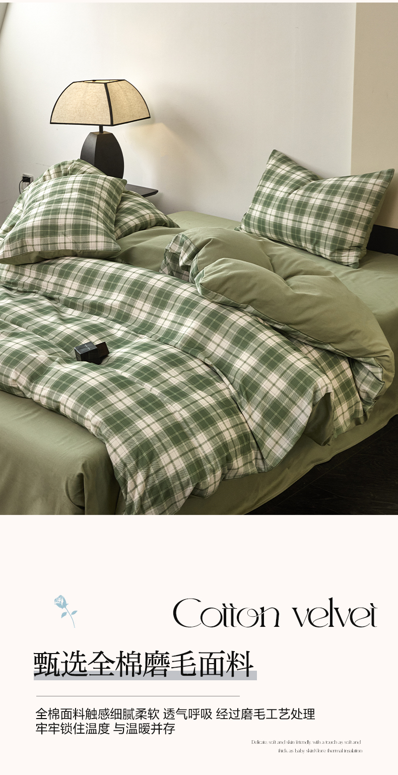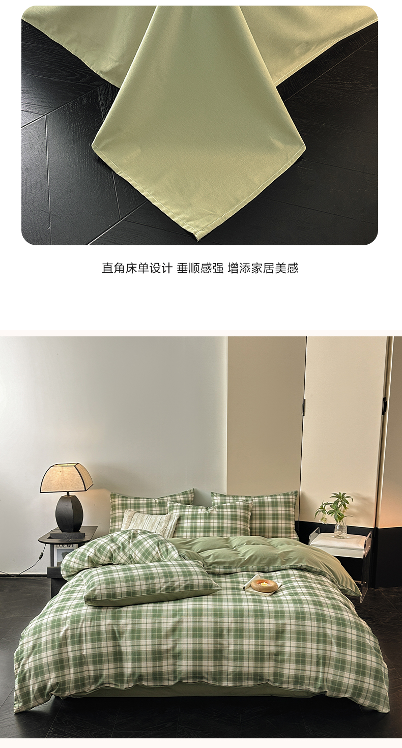 商品名称:雅居纺家纺 2024新款全棉印花磨毛四件套 旋律-绿格
