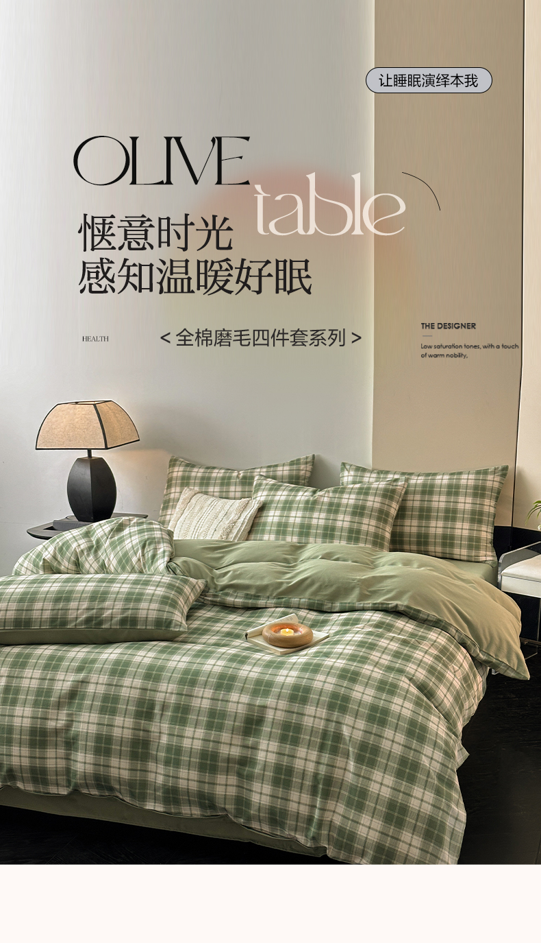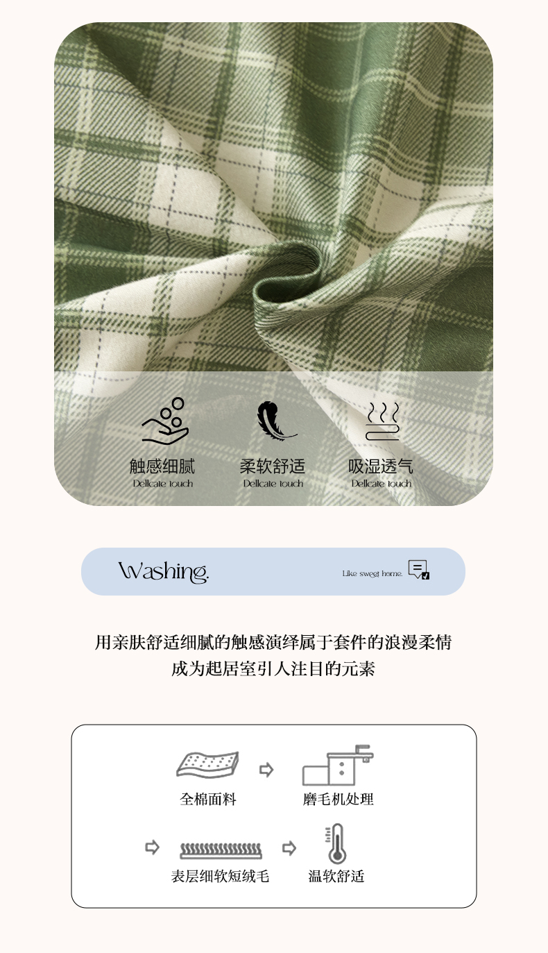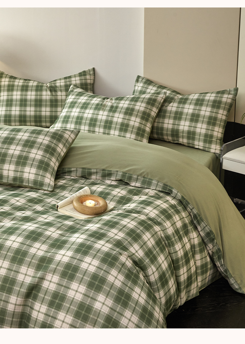 商品名称:雅居纺家纺 2024新款全棉印花磨毛四件套 旋律-绿格