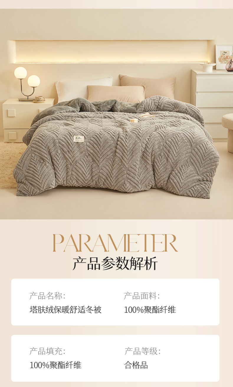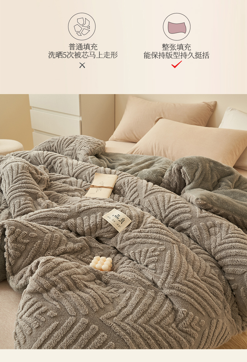 • 91家纺网 家纺一手货源 找家纺 2024新品塔肤绒保暖舒适冬被子被芯 枫叶-灰