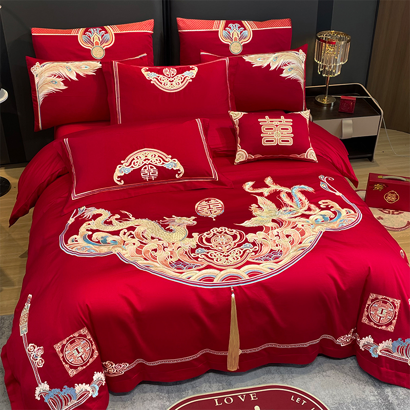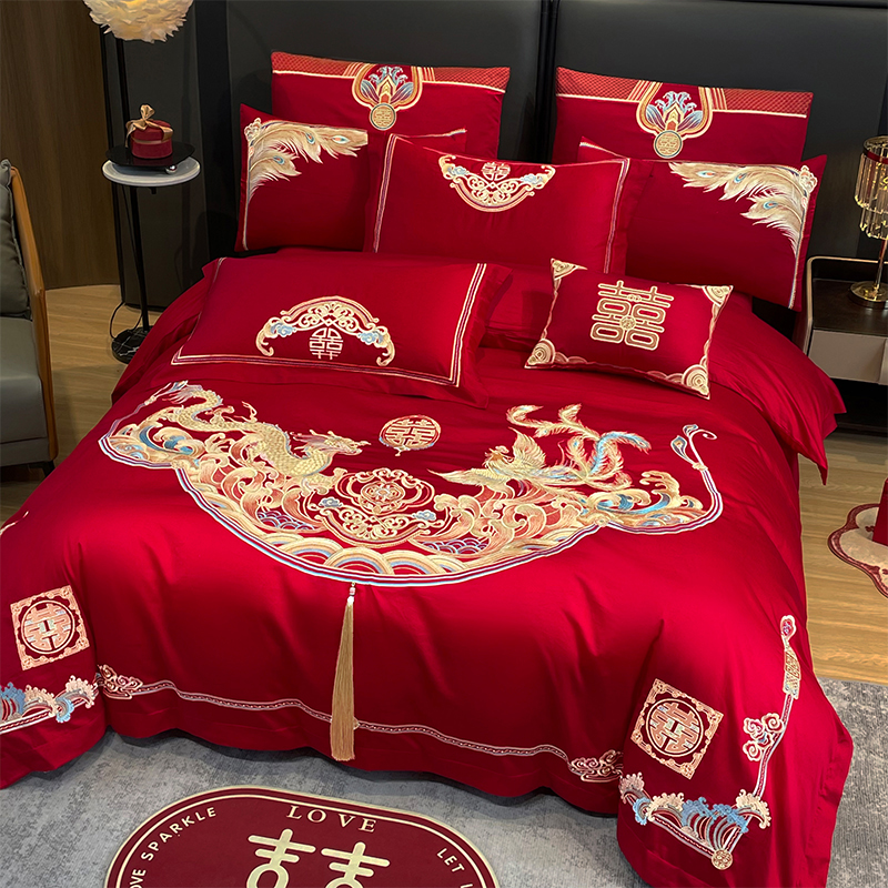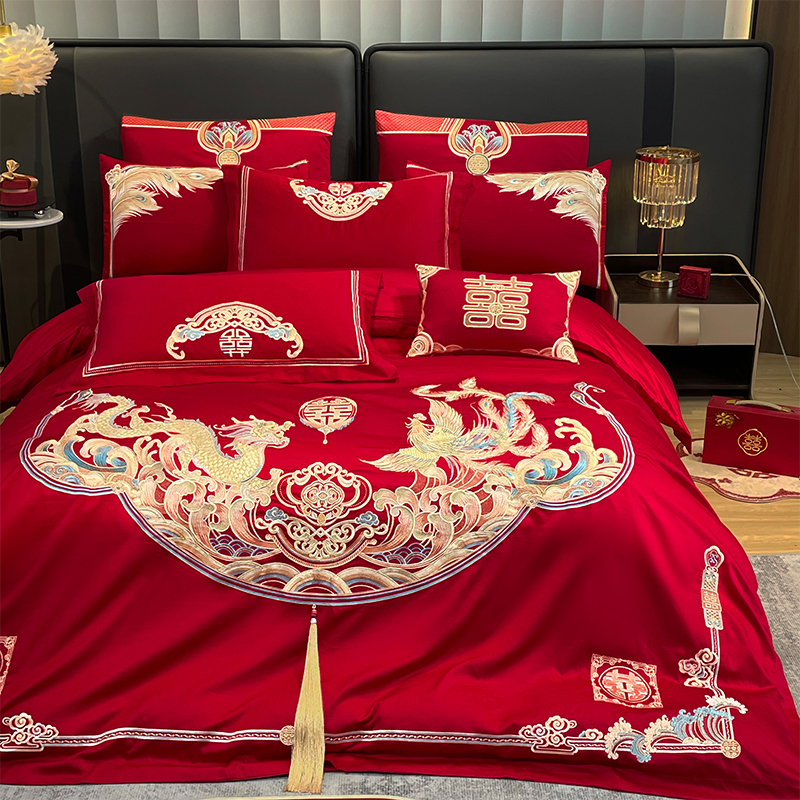 当前位置: 91家纺网 > 商品网购 > 床品套件 > 四件套 > 婚庆四件套 > 用心 2024年新款双面磨毛绣花婚庆四件套 龙凤良缘
