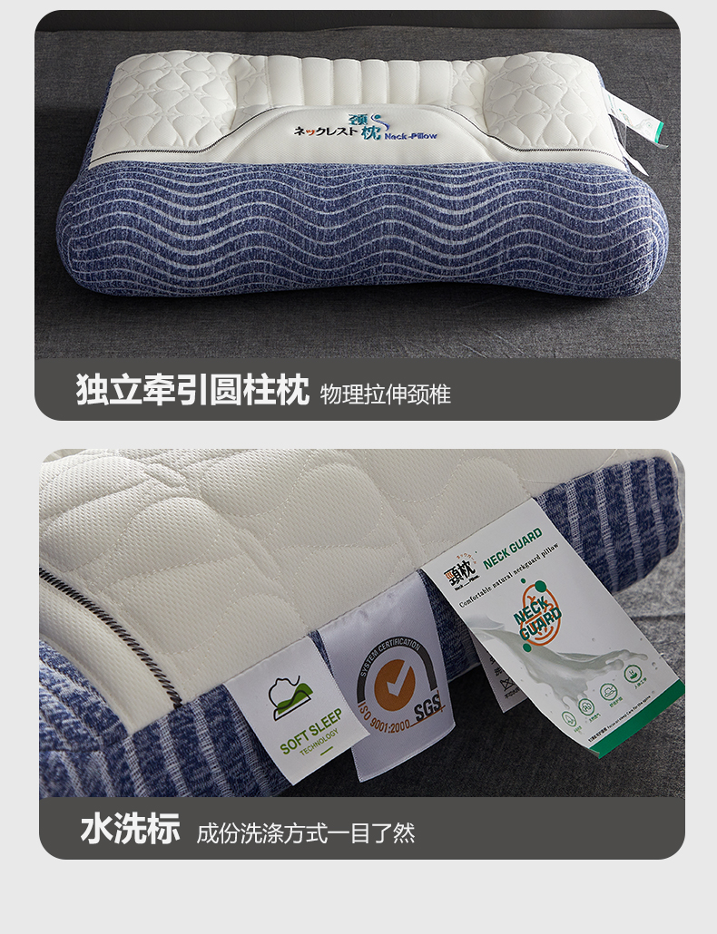 当前位置: 91家纺网 > 商品网购 > 枕头/枕芯/保健枕/颈椎枕 > 普通枕芯 > (总)2024新款乳胶牵引舒颈枕-蓝色波纹款枕头枕芯-风格二