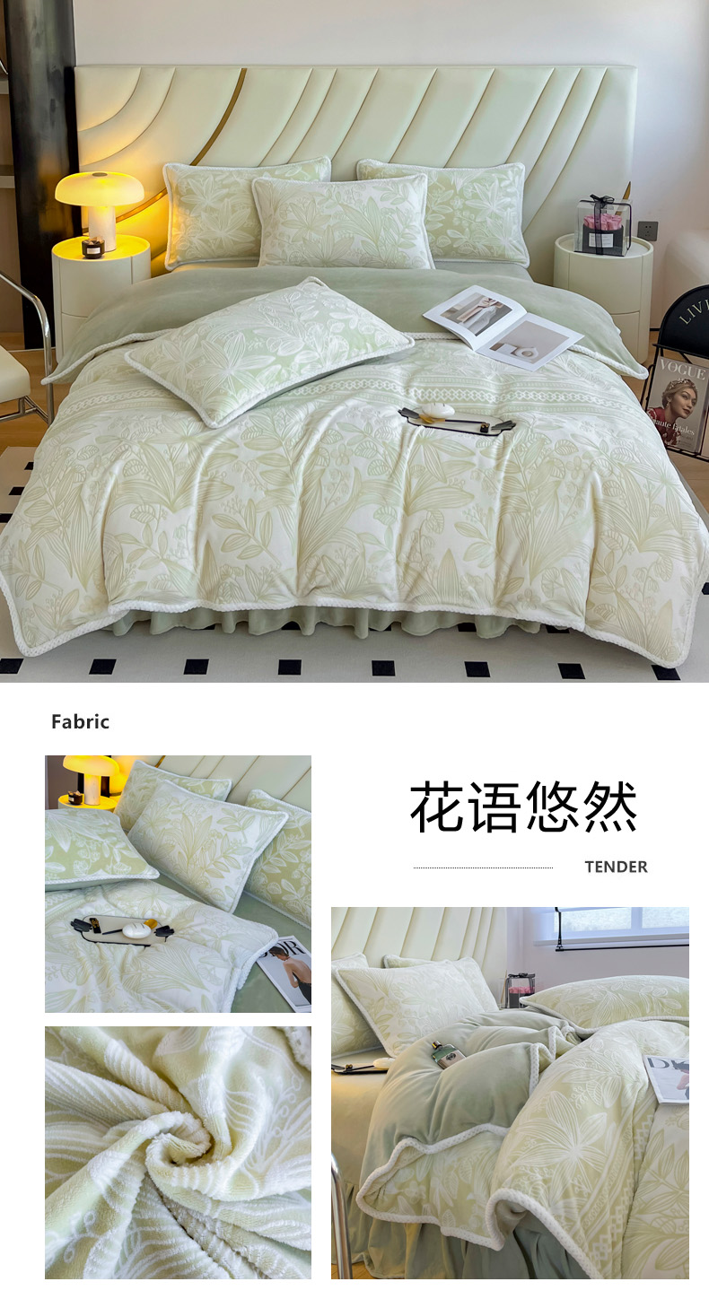(总)首选家纺 2024新款A类立体雕花绒牛奶绒婴儿绒四件套,蝶影,花语悠然,玫瑰粉,玫瑰桔,玫瑰绿,千叶-粉,千叶-咖,水墨花-绿,水墨画-粉,水墨江南,素色主义,繁花似锦,花间风铃,欧式情怀,纤羽