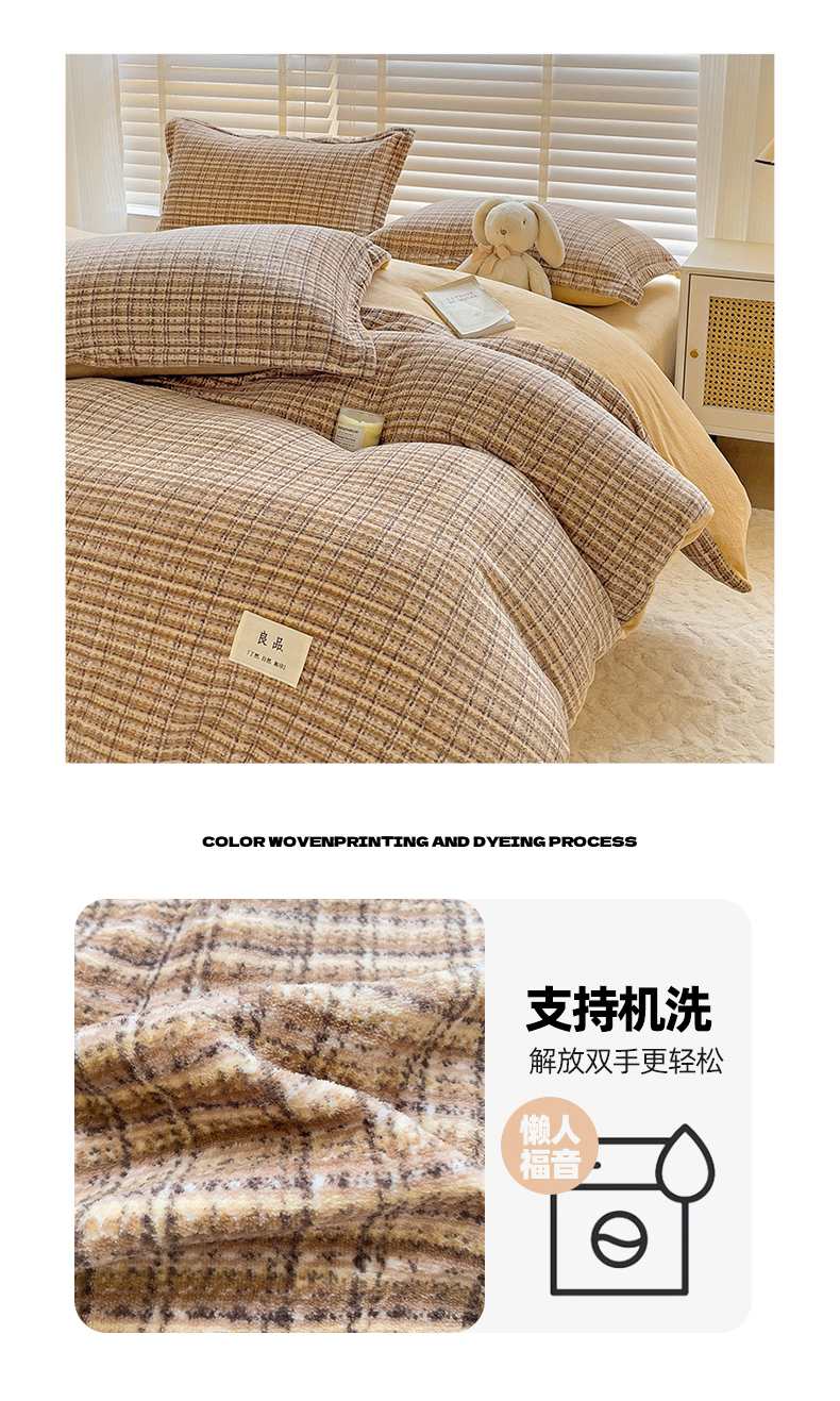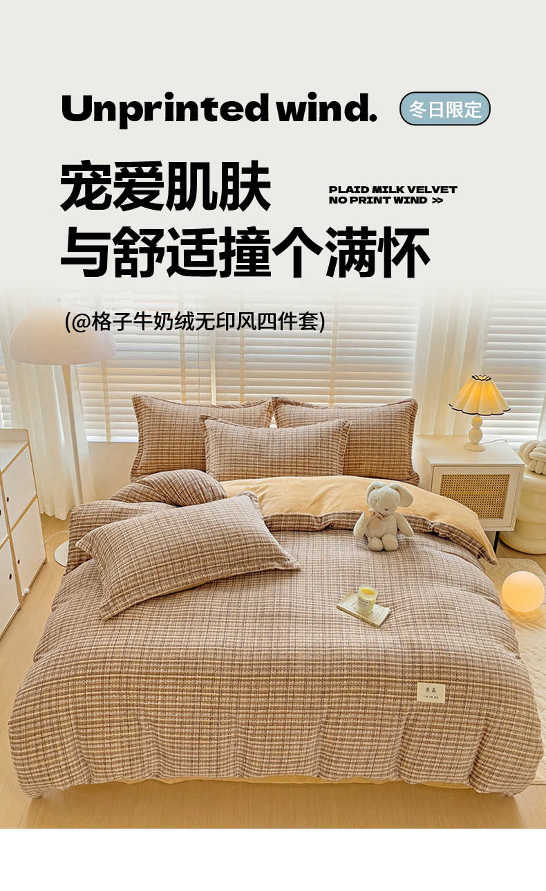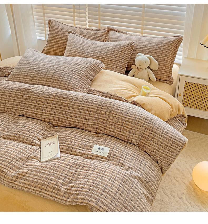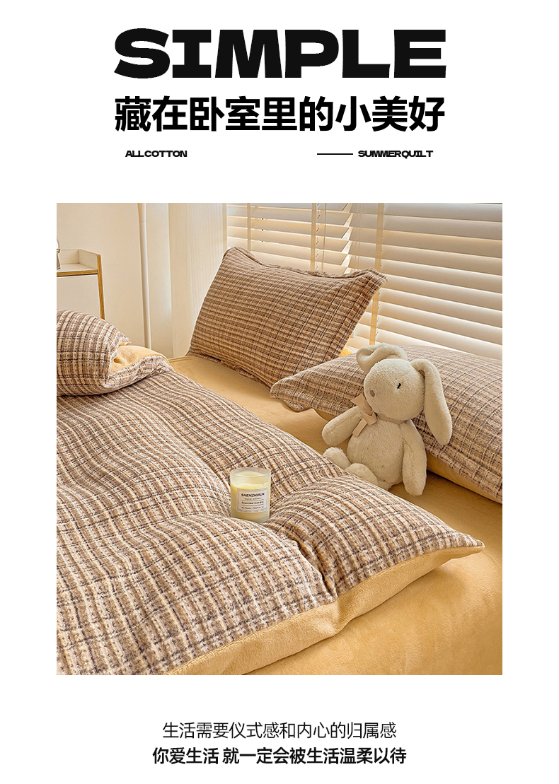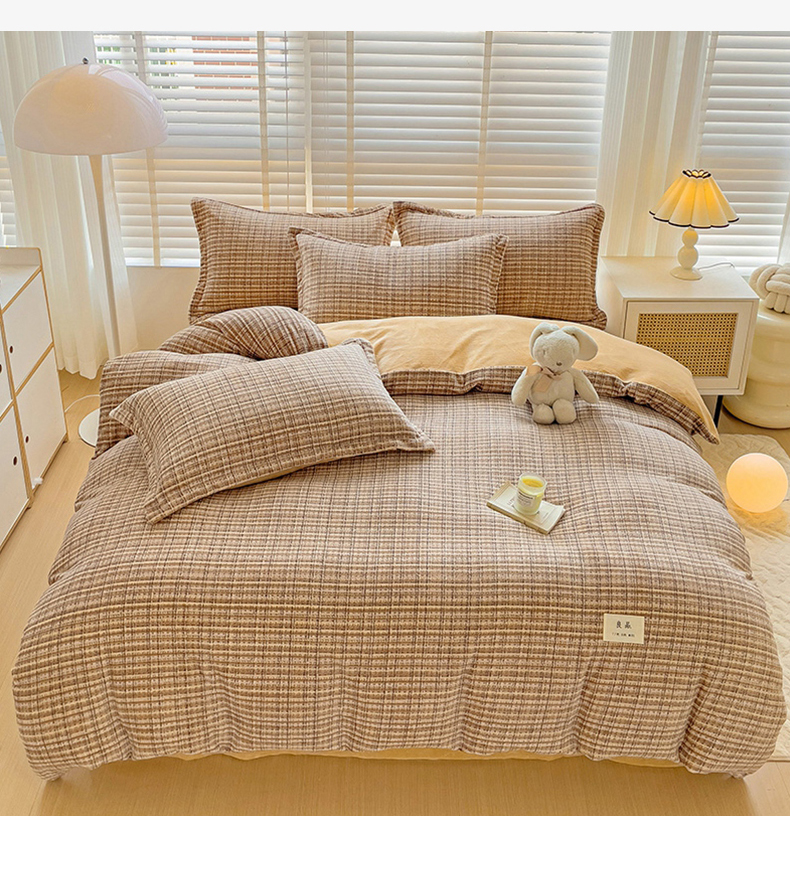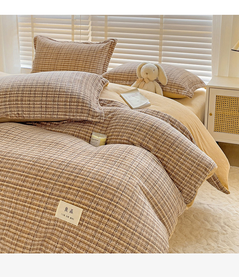 当前位置: 91家纺网 > 商品网购 > 床品套件 > 四件套 > 牛奶绒四件套 > 简一 2025新款牛奶绒无印风ins风方格系列-四件套 小香风荆棘-浅咖