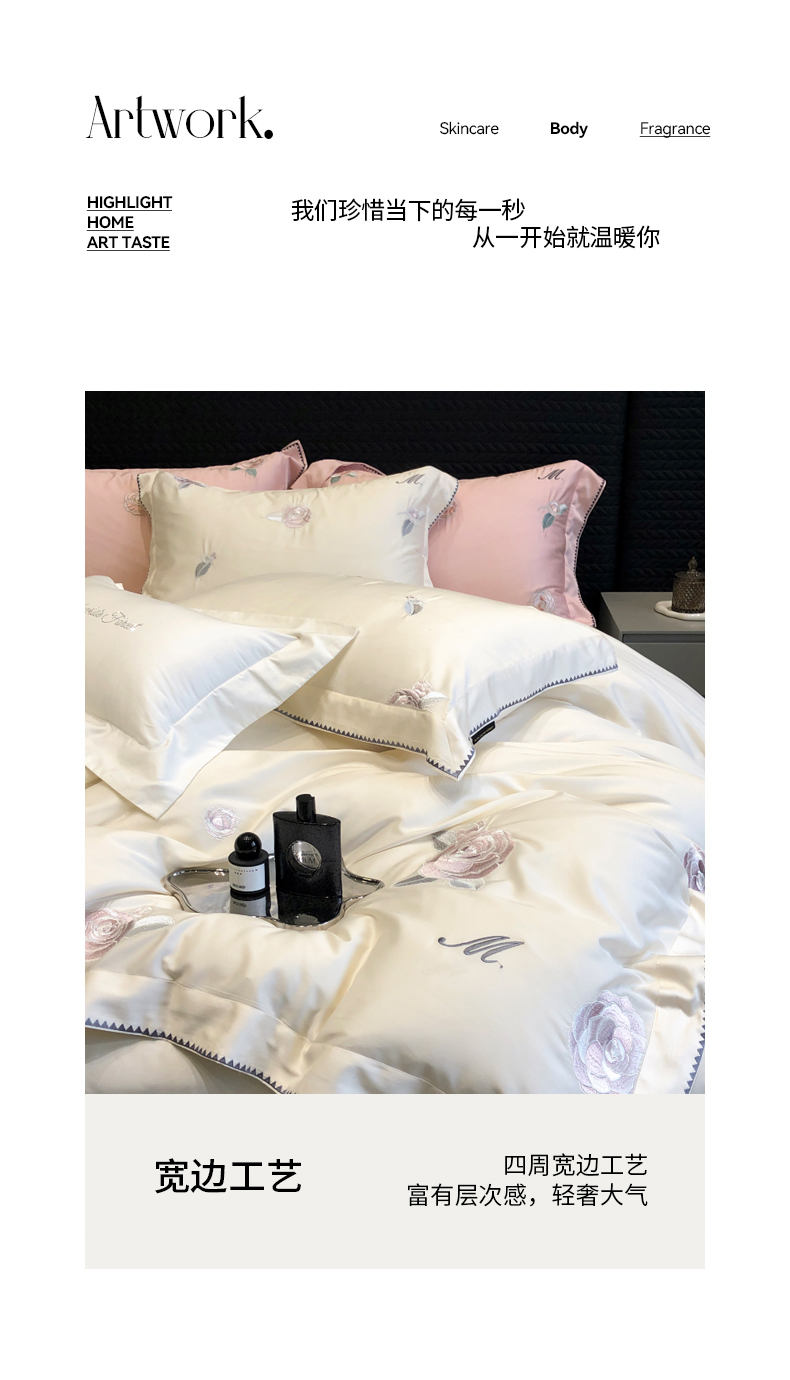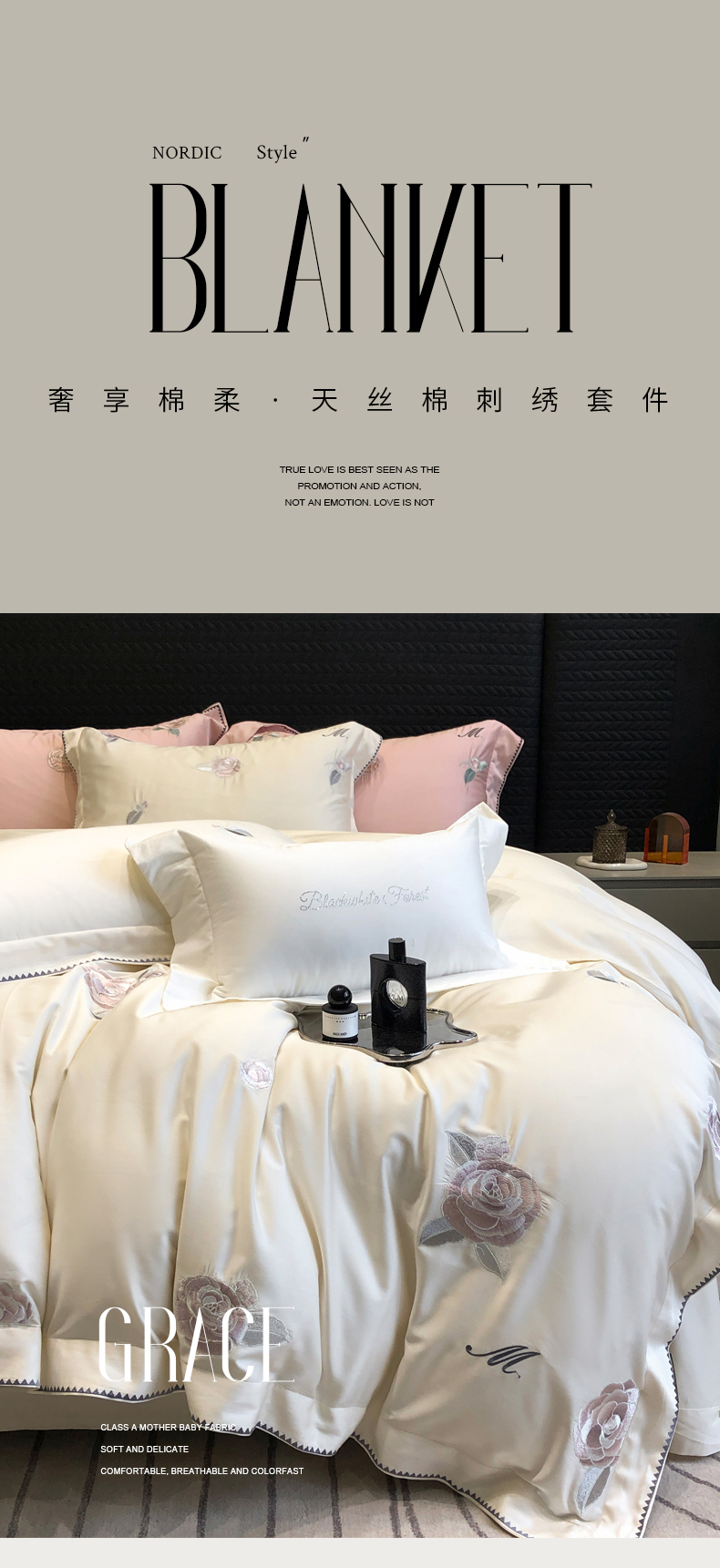 (总)黑白森林2024款 80X80S高支天丝棉四件套镂空蕾丝花边天丝全棉,尚美-晨夕粉,尚美-古象白,尚美-青砂绿,尚美-银雪灰