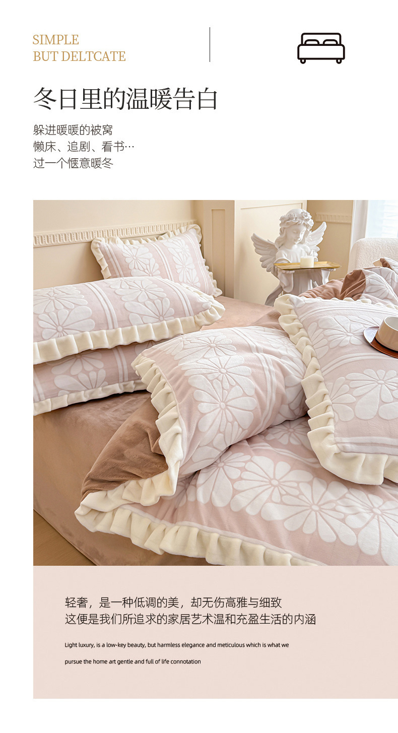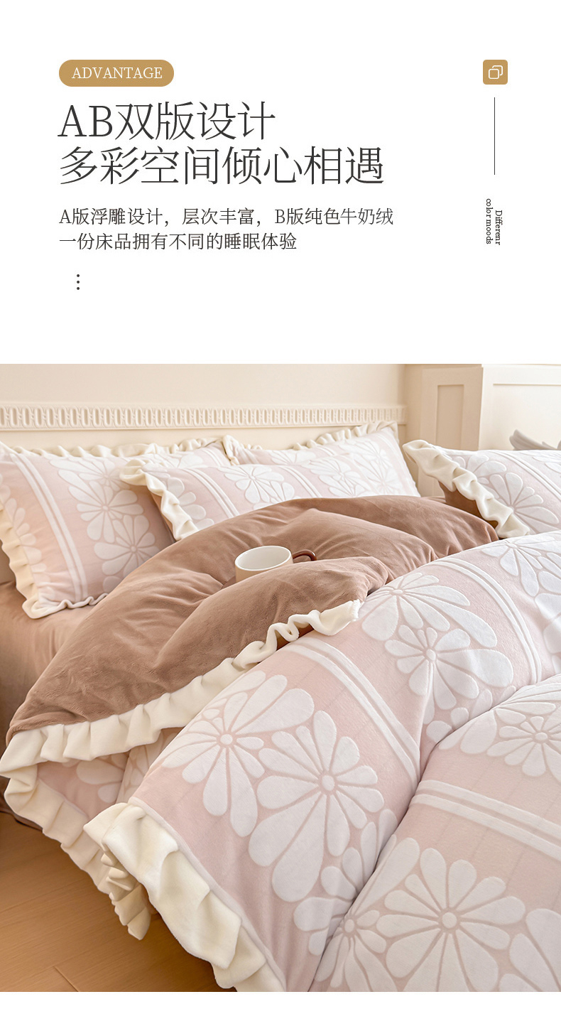 KA家纺 2025冬季新款雕花牛奶绒四件套-太阳花系列 太阳花香槟