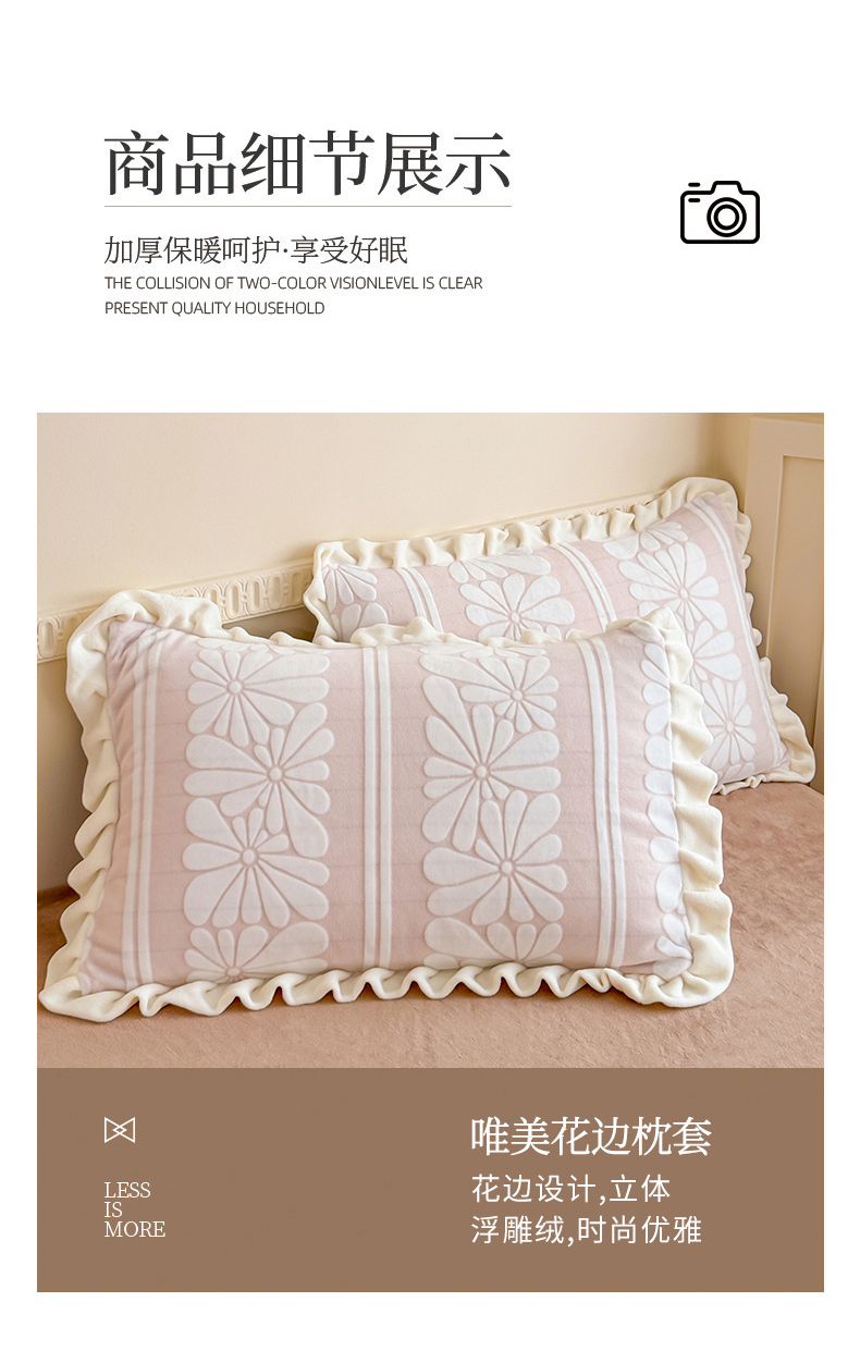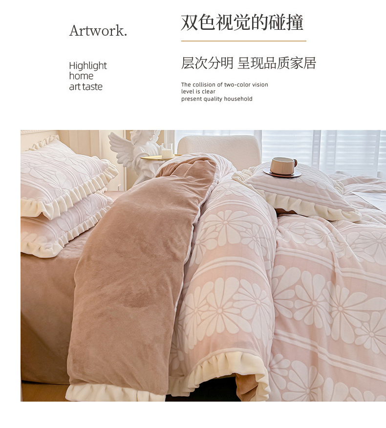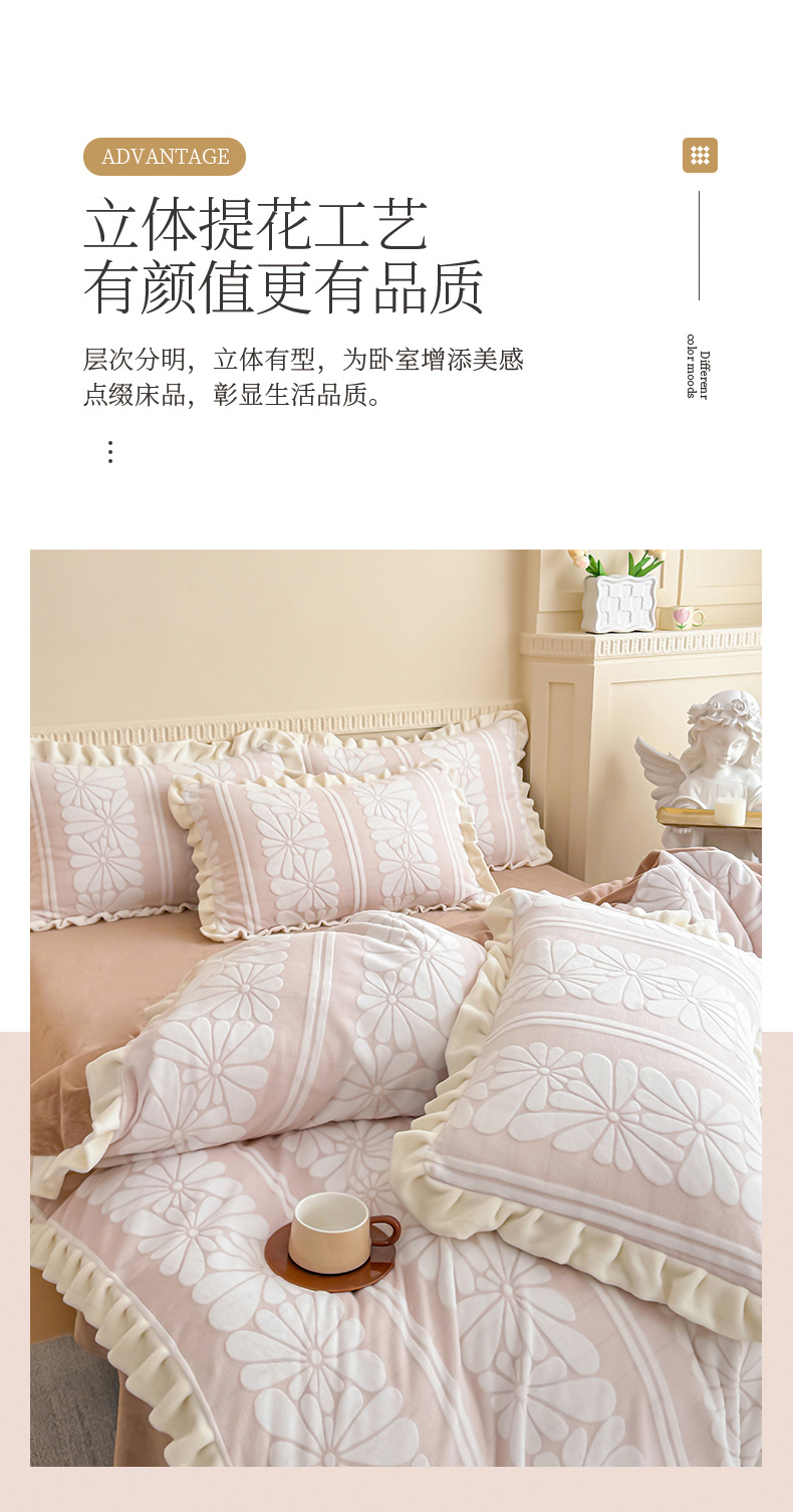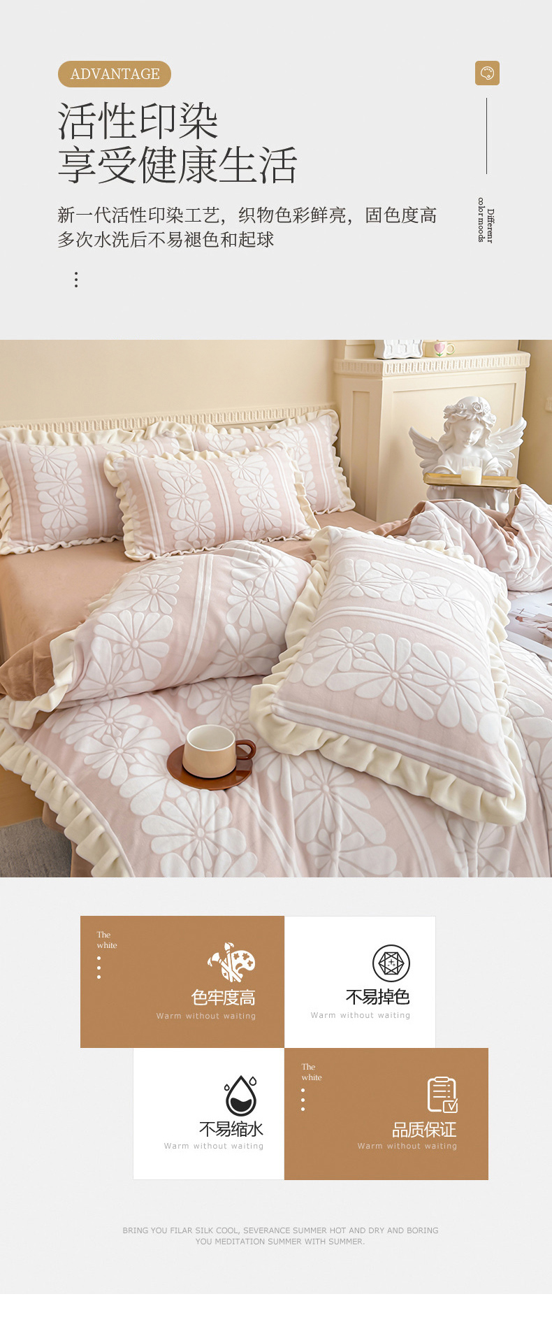(总)KA家纺 2025新款冬双层蕾丝花边雕花牛奶绒床裙款四件套,郁郁葱葱,紫气东来,粉色回忆