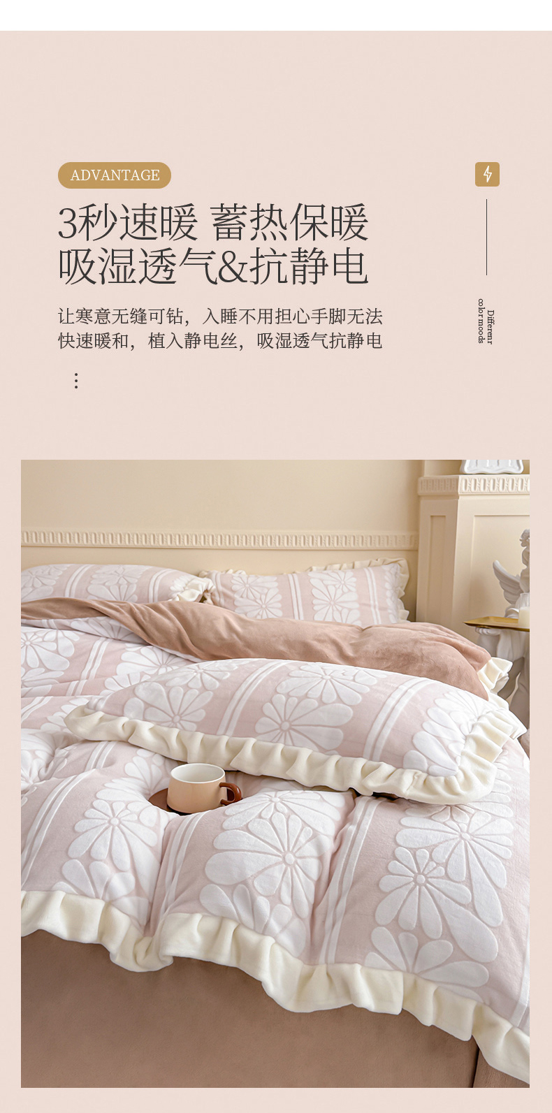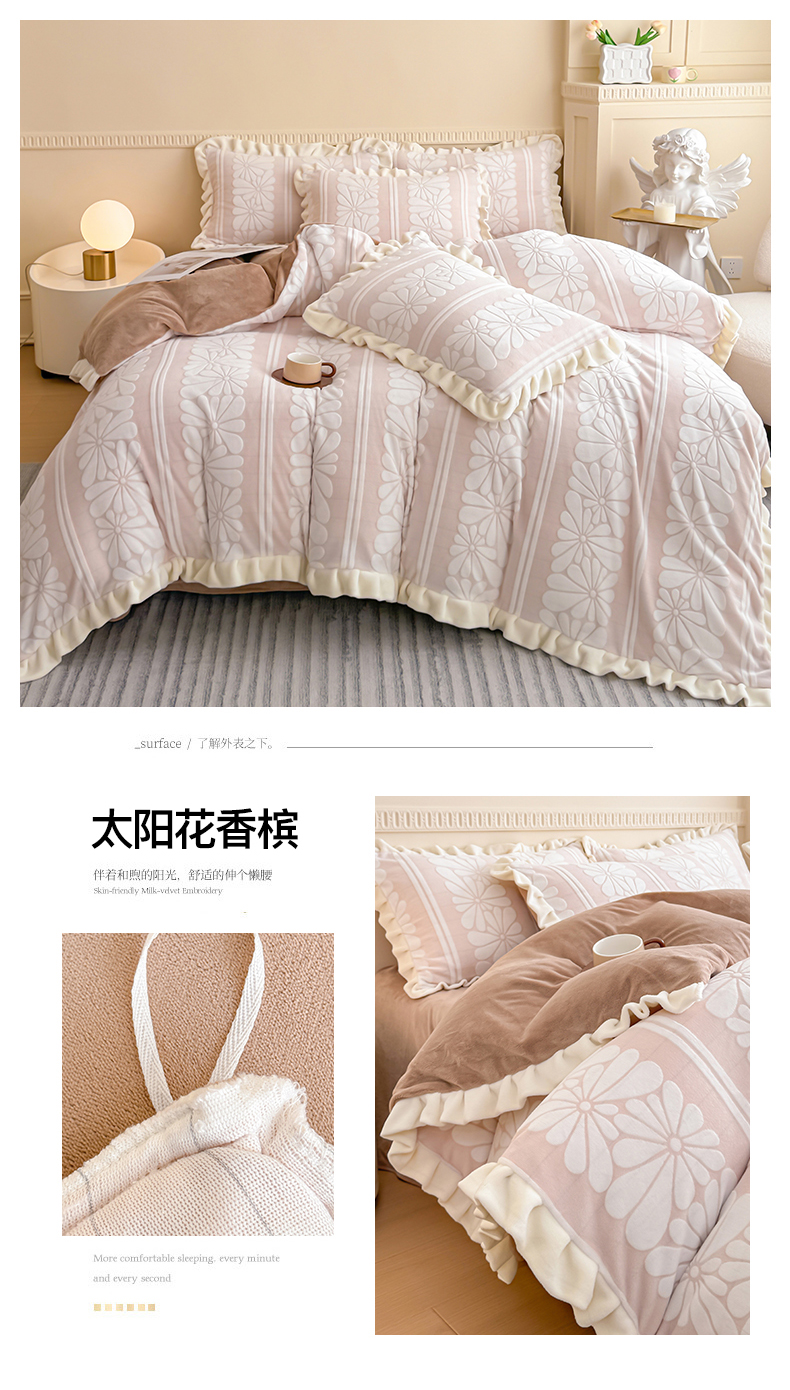 商品名称:KA家纺 2025冬季新款雕花牛奶绒四件套-太阳花系列 太阳花香槟