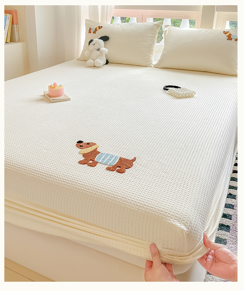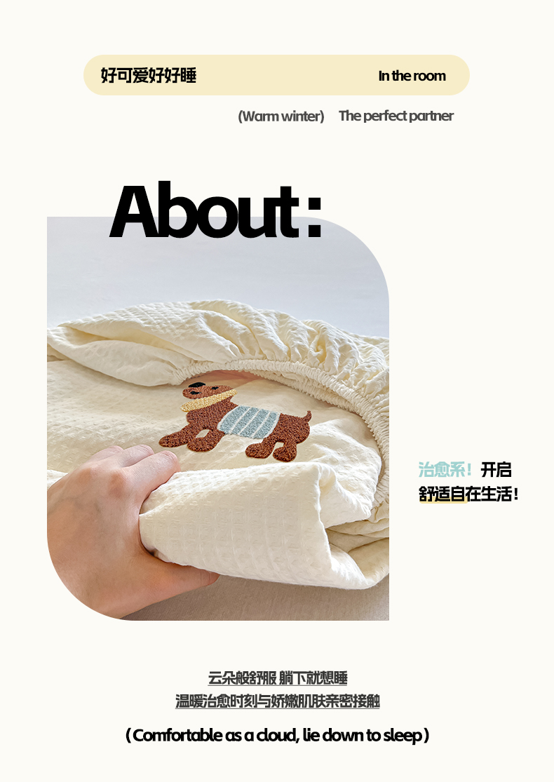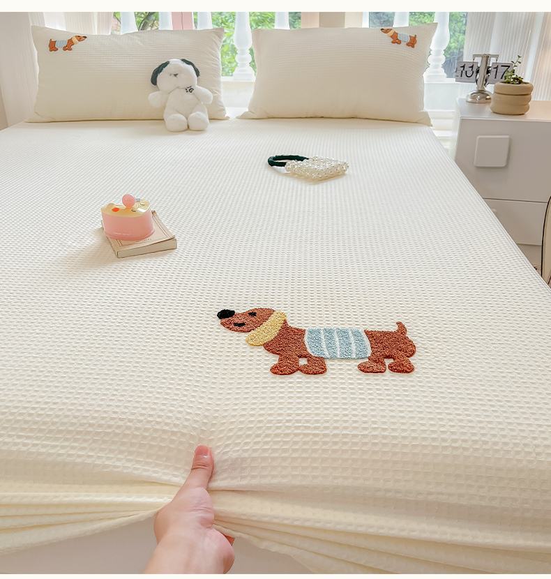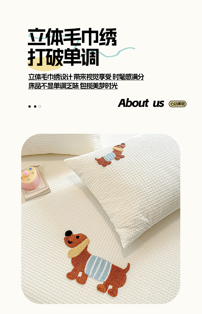 (总)居眠 2025新款全棉纯棉云感皱皱纱毛巾绣床单,白胡子狗狗,波点甜甜圈,大象先生,蝴蝶猫咪,腊肠樱桃,三只小可爱,圣诞树,兔兔小姐,外星小鸟,小象汽车,组合图仅做展示