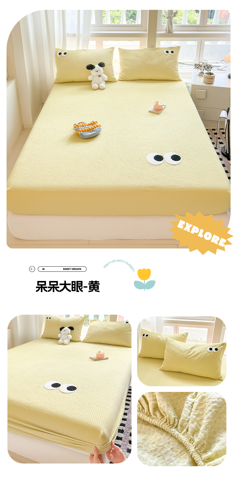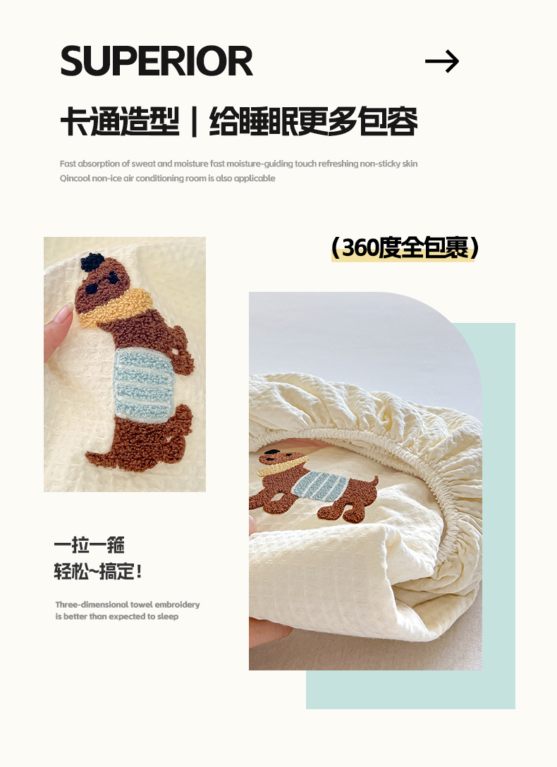 (总)居眠 2025新款A类母婴级卡通毛巾绣天丝床笠,假期小狗-天蓝,卡皮巴拉-水果绿,噗噗猫-肉粉,小树苗-奶昔白,小熊-姜黄