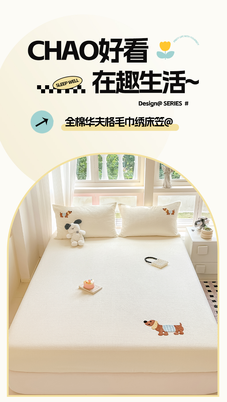 (总)居眠 2024新款全棉华夫格毛巾绣床笠