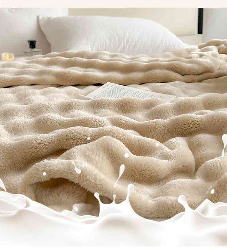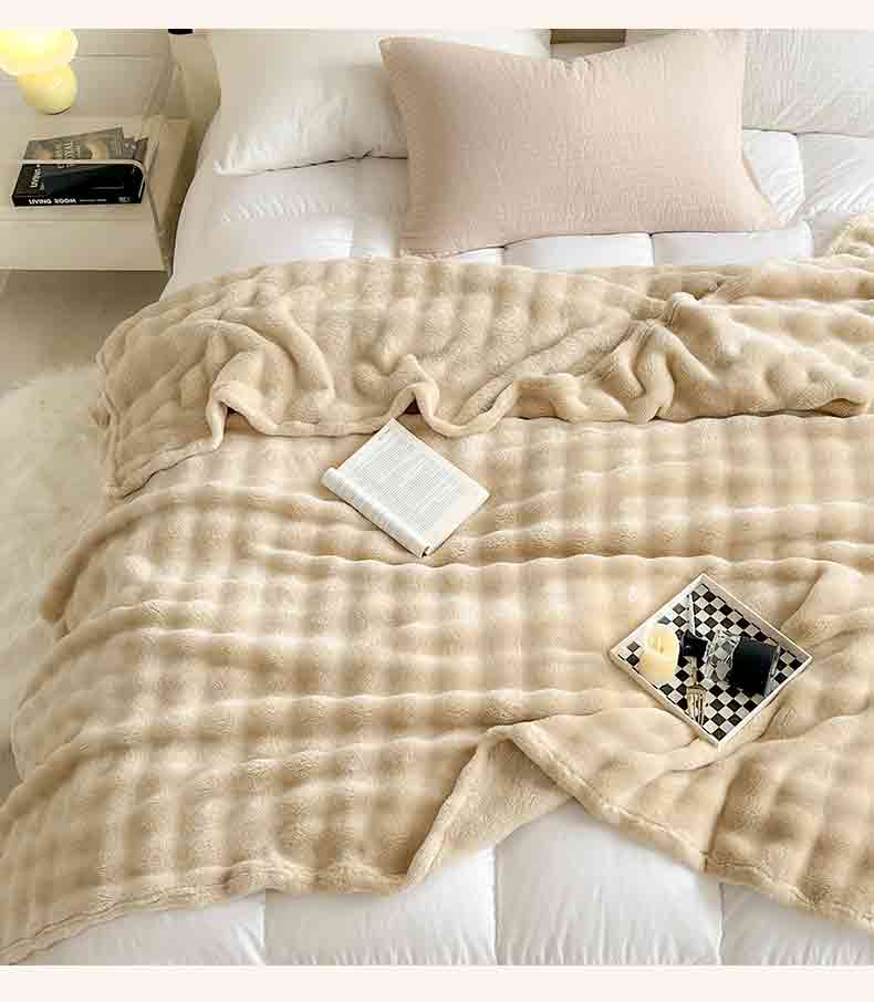 羋多(原穆琪)2024新款高克重牛奶绒仿兔毛泡泡毛毯双面绒床单办公室多功能盖毯午睡沙发毯披肩毯 奶牛咖